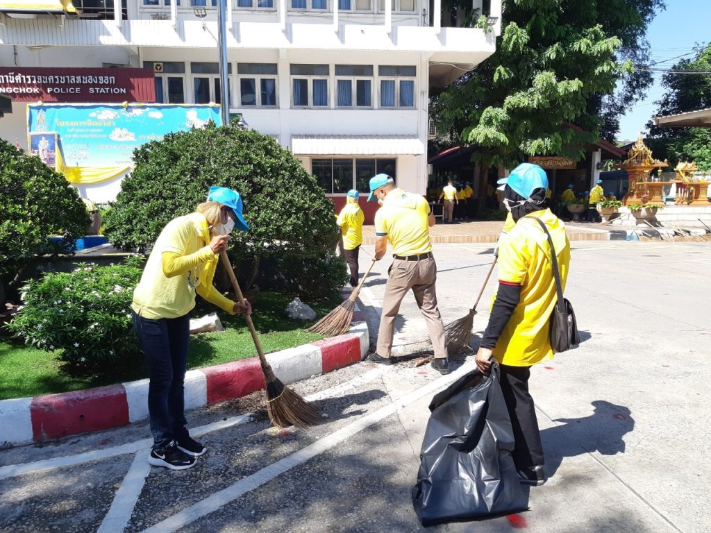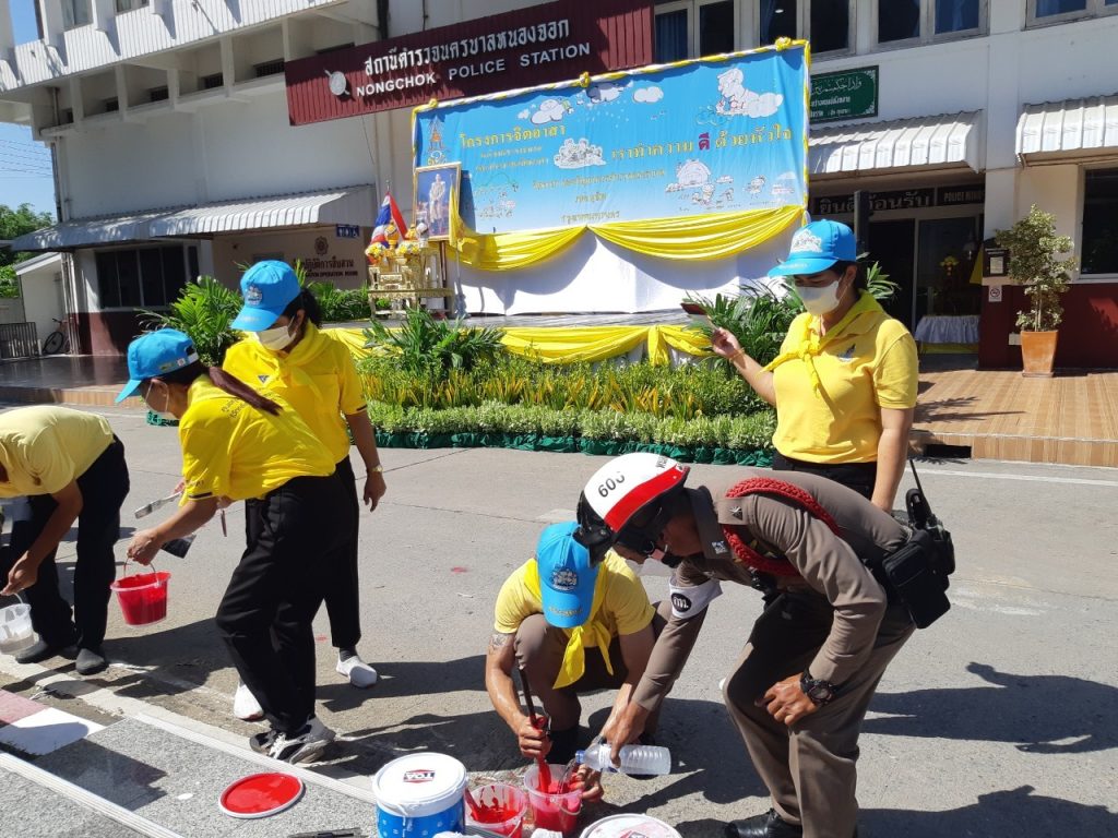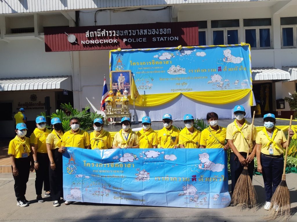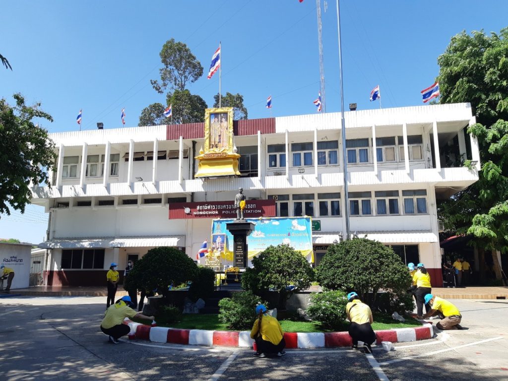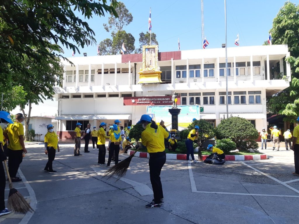 เมื่อวันที่ 23 มิ.ย.66 เวลา 09.00 น. พ.ต.อ.ยิ่งยศ สุวรรณโณ ผกก.สน.หนองจอก (ประธานในพิธี) พ.ต.ท.อธิวัฒน์ อธิชัยภูวพงศ์ รอง ผกก.ป.ฯ พ.ต.ท.มานิต จันทร์ประสิทธิ์ รอง ผกก.สอบสวนฯ พ.ต.ท.อธิช์ลักษณ์ สาระศาลิน รอง ผกก.สส.ฯ พ.ต.ท.ไพโรจน์ ชื่นชมน้อย สว.สส.ฯ พ.ต.ท.สมาน บ่อชล สว.อก.ฯ พ.ต.ท.ปริยชาต ผลไม้ สว.จร.ฯ พ.ต.ต.สมนึก ภู่ประภา สวป.ฯ ดร.สุวิมล หวังกิจ ประธาน กต.ตร.สน.หนองจอก ผู้บริหารส่วนราชการในภาคส่วนอื่น ผอ.เขตหนองจอก,ผอ.สนง.คุมประพฤติกรุงเทพฯ4,ผู้แทน ผอ.รพ.เวชการุณย์รัศมิ์,ผู้แทน รร.มัธยมวัดหนองจอก,ประธาน อปพร.เขตหนองจอก พร้อมด้วยข้าราชตำรวจจิตอาสา สน.หนองจอกและประชาชนจิตอาสา ร่วมกิจกรรมจิตอาสาพัฒนา ทำความสะอาด ปรับภูมิทัศน์ ทาสีฟุตบาท ในบริเวณโดยรอบ และอาคารที่ทำการ สน.หนองจอก ถนนผดุงพันธ์ แขวงหนองจอก เขตหนองจอก กรุงเทพฯ