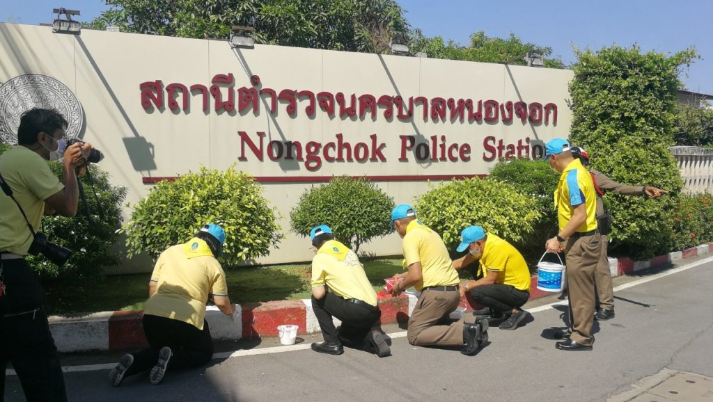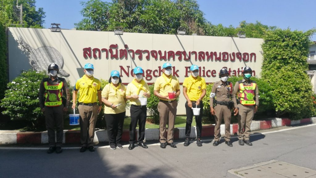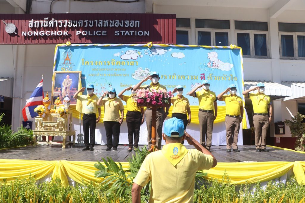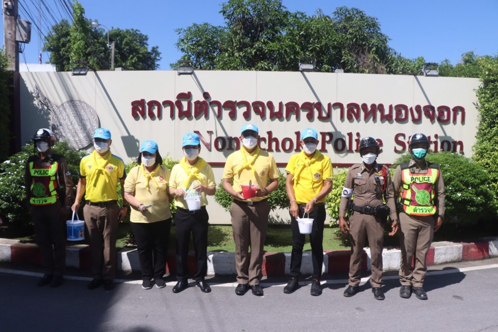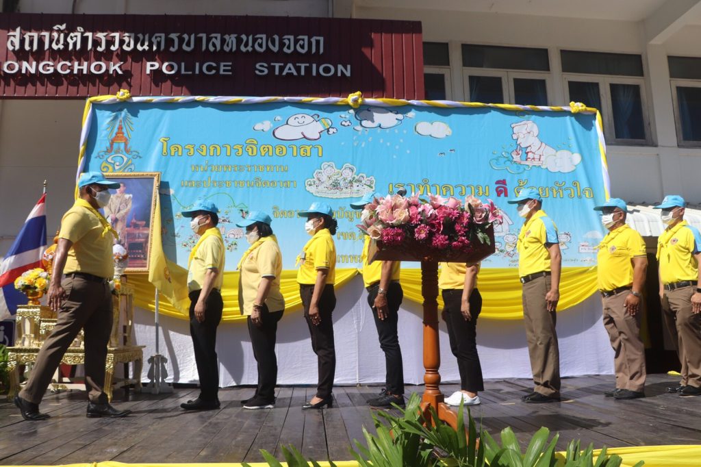 เมื่อวันที่ 23 มิ.ย.66 เวลา 09.00 น. พ.ต.อ.ยิ่งยศ สุวรรณโณ ผกก.สน.หนองจอก (ประธานในพิธี) พ.ต.ท.อธิวัฒน์ อธิชัยภูวพงศ์ รอง ผกก.ป.ฯ พ.ต.ท.มานิต จันทร์ประสิทธิ์ รอง ผกก.สอบสวนฯ พ.ต.ท.อธิช์ลักษณ์ สาระศาลิน รอง ผกก.สส.ฯ พ.ต.ท.ไพโรจน์ ชื่นชมน้อย สว.สส.ฯ พ.ต.ท.สมาน บ่อชล สว.อก.ฯ พ.ต.ท.ปริยชาต ผลไม้ สว.จร.ฯ พ.ต.ต.สมนึก ภู่ประภา สวป.ฯ ดร.สุวิมล หวังกิจ ประธาน กต.ตร.สน.หนองจอก ผู้บริหารส่วนราชการในภาคส่วนอื่น ผอ.เขตหนองจอก,ผอ.สนง.คุมประพฤติกรุงเทพฯ4,ผู้แทน ผอ.รพ.เวชการุณย์รัศมิ์,ผู้แทน รร.มัธยมวัดหนองจอก,ประธาน อปพร.เขตหนองจอก พร้อมด้วยข้าราชตำรวจจิตอาสา สน.หนองจอกและประชาชนจิตอาสา ร่วมกิจกรรมจิตอาสาพัฒนา ทำความสะอาด ปรับภูมิทัศน์ ทาสีฟุตบาท ในบริเวณโดยรอบ และอาคารที่ทำการ สน.หนองจอก ถนนผดุงพันธ์ แขวงหนองจอก เขตหนองจอก กรุงเทพฯ