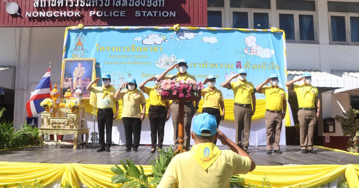 เมื่อวันที่ 23 มิ.ย.66 เวลา 09.00 น. พ.ต.อ.ยิ่งยศ สุวรรณโณ ผกก.สน.หนองจอก (ประธานในพิธี) พ.ต.ท.อธิวัฒน์ อธิชัยภูวพงศ์ รอง ผกก.ป.ฯ พ.ต.ท.มานิต จันทร์ประสิทธิ์ รอง ผกก.สอบสวนฯ พ.ต.ท.อธิช์ลักษณ์ สาระศาลิน รอง ผกก.สส.ฯ พ.ต.ท.ไพโรจน์ ชื่นชมน้อย สว.สส.ฯ พ.ต.ท.สมาน บ่อชล สว.อก.ฯ พ.ต.ท.ปริยชาต ผลไม้ สว.จร.ฯ พ.ต.ต.สมนึก ภู่ประภา สวป.ฯ ดร.สุวิมล หวังกิจ ประธาน กต.ตร.สน.หนองจอก ผู้บริหารส่วนราชการในภาคส่วนอื่น ผอ.เขตหนองจอก,ผอ.สนง.คุมประพฤติกรุงเทพฯ4,ผู้แทน ผอ.รพ.เวชการุณย์รัศมิ์,ผู้แทน รร.มัธยมวัดหนองจอก,ประธาน อปพร.เขตหนองจอก พร้อมด้วยข้าราชตำรวจจิตอาสา สน.หนองจอกและประชาชนจิตอาสา ร่วมกิจกรรมจิตอาสาพัฒนา ทำความสะอาด ปรับภูมิทัศน์ ทาสีฟุตบาท ในบริเวณโดยรอบ และอาคารที่ทำการ สน.หนองจอก ถนนผดุงพันธ์ แขวงหนองจอก เขตหนองจอก กรุงเทพฯ