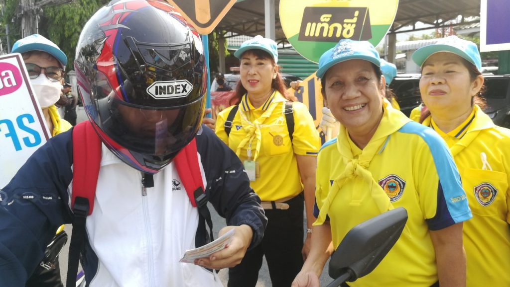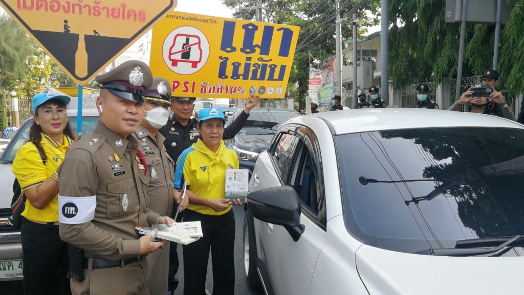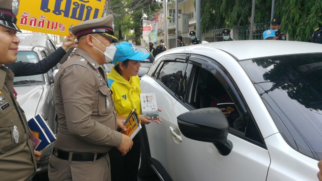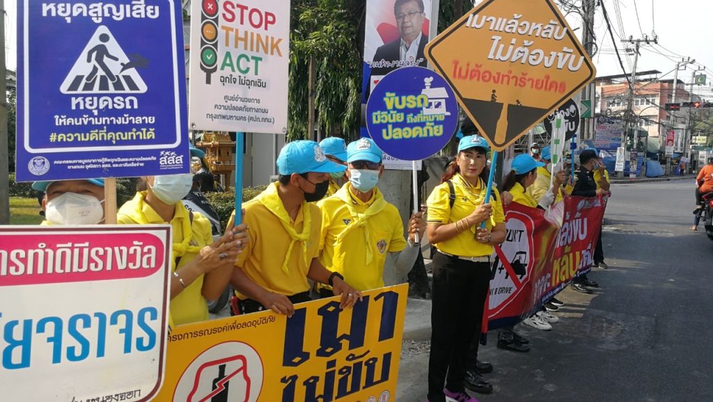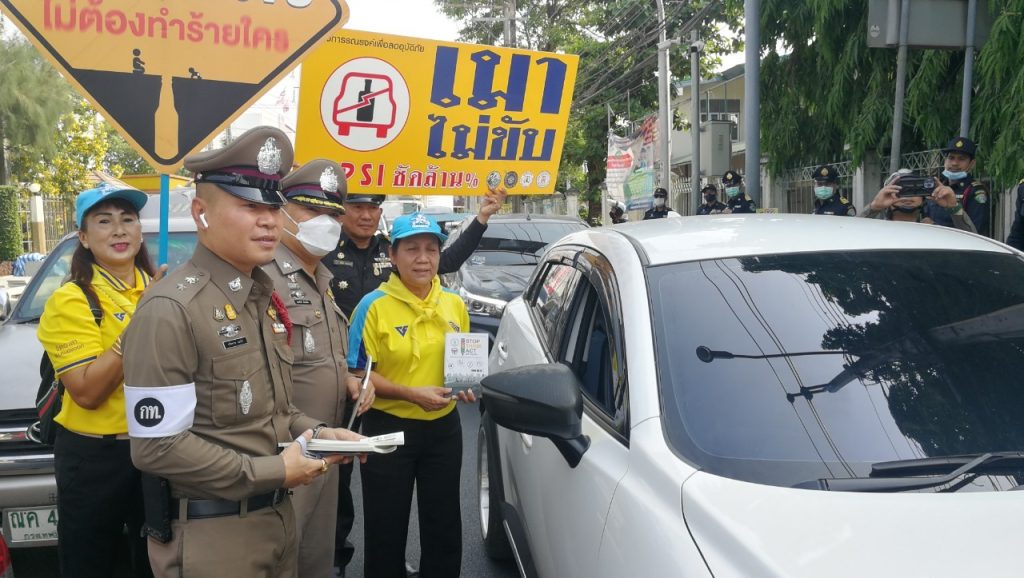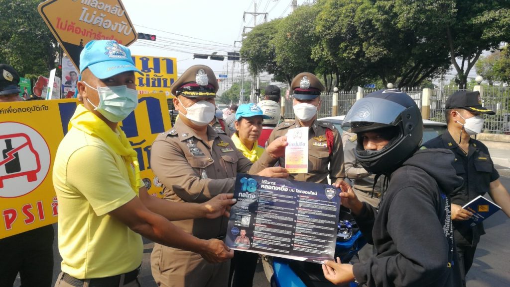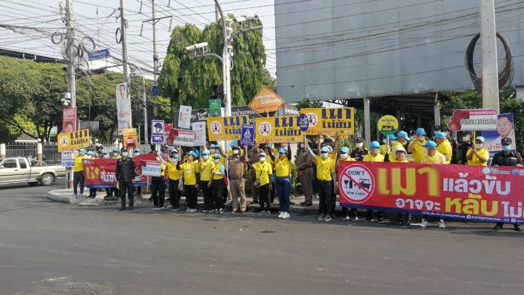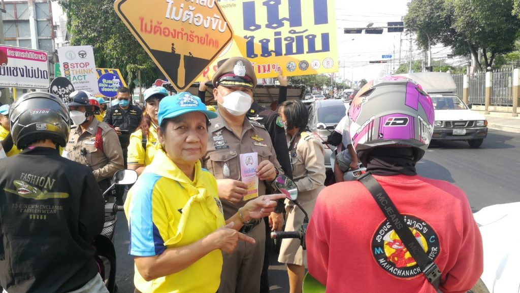 วันที่ 10 เมษายน 2566 เวลา 09.00 น. พ.ต.อ.สมศักดิ์ เอี่ยมอิ่ม ผกก(สอบสวน)ฯ รรท.ผกก.สน.หนองจอก,ดร.สุวิมล หวังกิจ ประธาน กต.ตร.สน.หนองจอก พ.ต.ท.ปริยชาต ผลไม้ สว.จร.สน.หนองจอก เจ้าหน้าที่ตำรวจจราจร ตำรวจจิตอาสาสำนักงานหนองจอก เทศกิจ มูลนิธิราชพฤษหนองจอก และประชาชนจิตอาสาร่วมรณรงค์เพื่อลดอุบัติเหตุฯ ช่วงเทศกาลสงกรานต์ 2566 ณ บริเวณแยกหน้าเขตหนองจอก