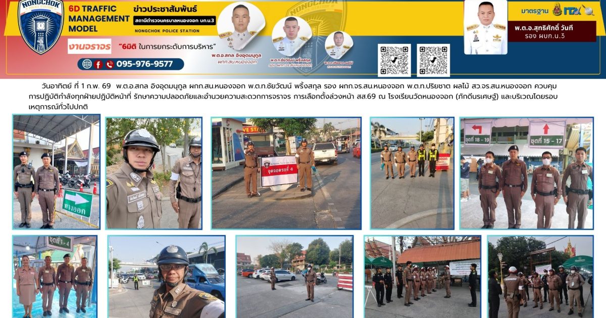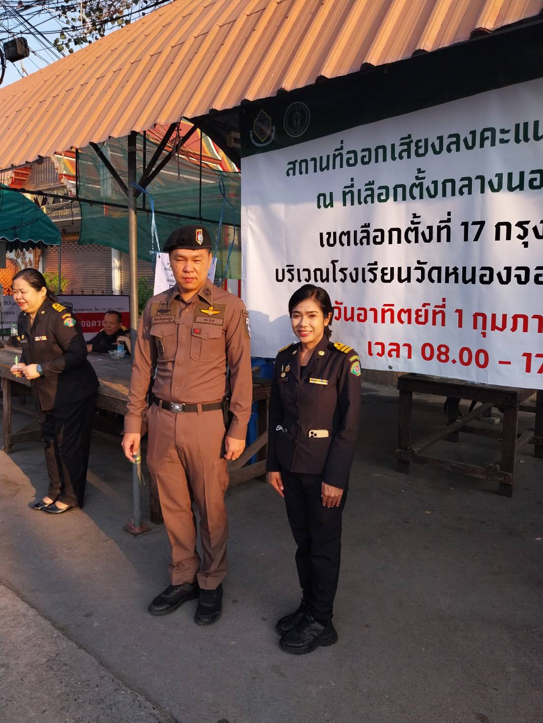 วันอาทิตย์ ที่ 1 ก.พ. 69 พ.ต.อ.สกล อิงอุดมนุกูล ผกก.สน.หนองจอก พ.ต.ท.ชัยวัฒน์ พริ้งสกุล รอง ผกก.จร.สน.หนองจอก พ.ต.ท.ปริยชาต ผลไม้ สว.จร.สน.หนองจอก ควบคุมการปฏิบัติกำลังทุกฝ่ายปฏิบัติหน้าที่ รักษาความปลอดภัยและอำนวยความสะดวกการจราจร การเลือกตั้งล่วงหน้า สส.69 ณ โรงเรียนวัดหนองจอก (ภักดีนรเศษฐ์) และบริเวณโดยรอบเหตุการณ์ทั่วไปปกติ