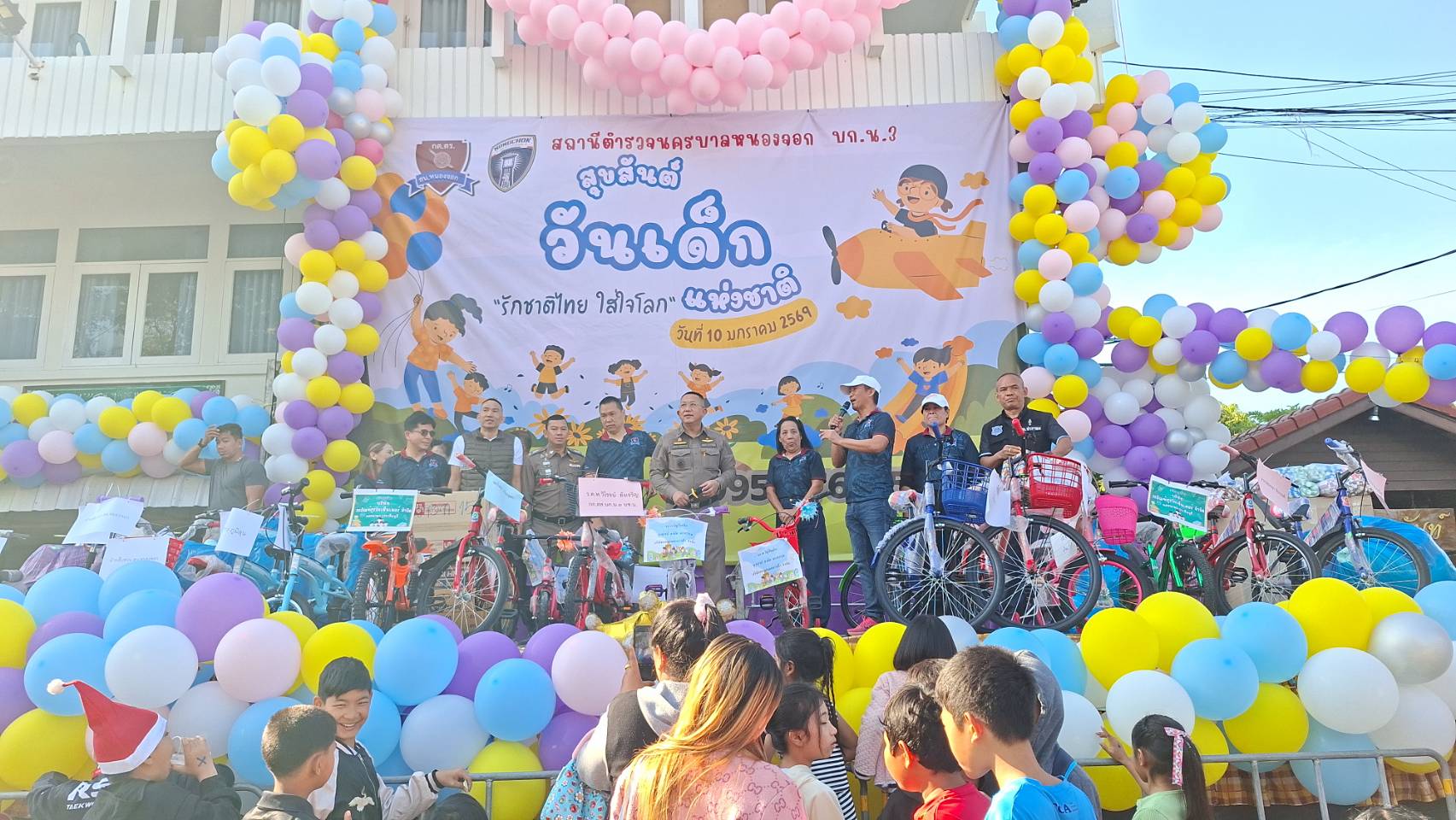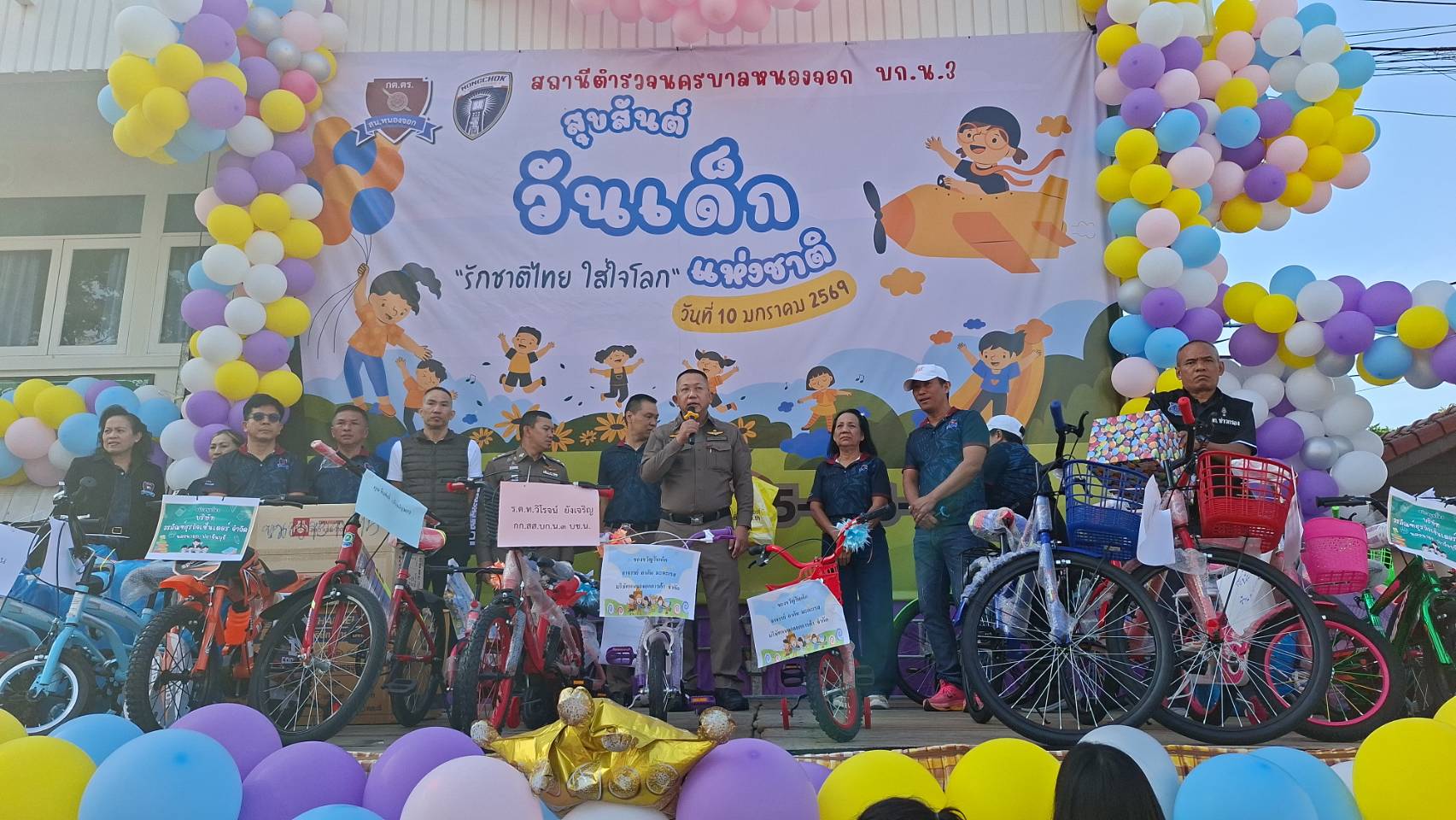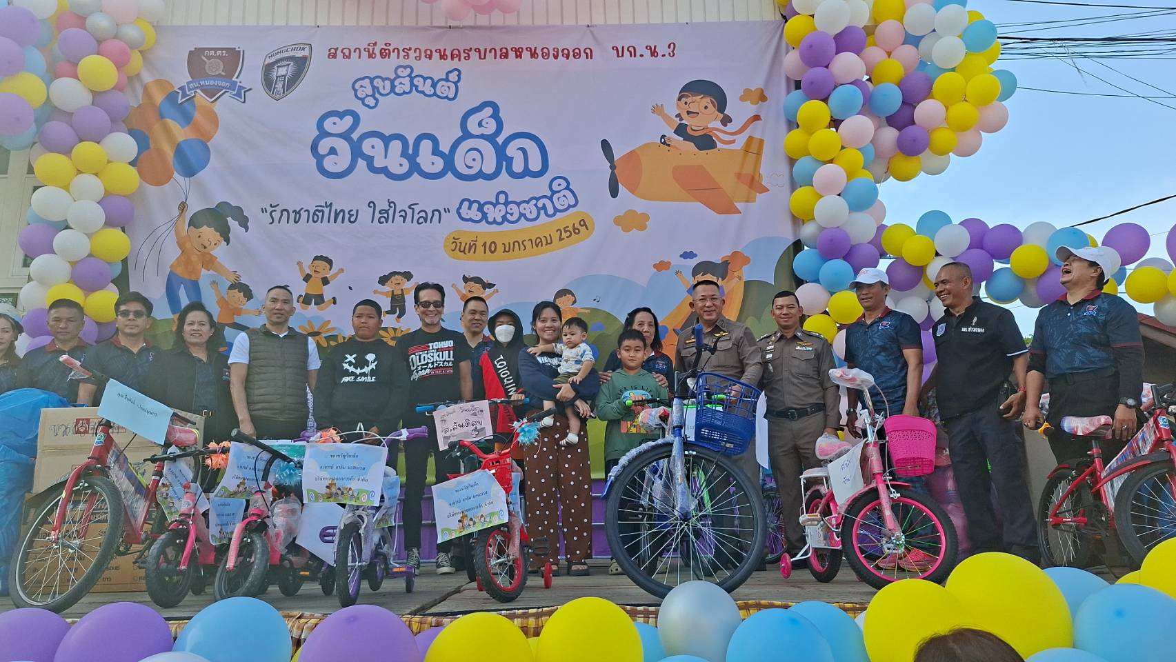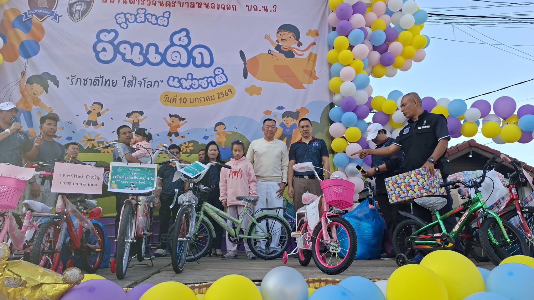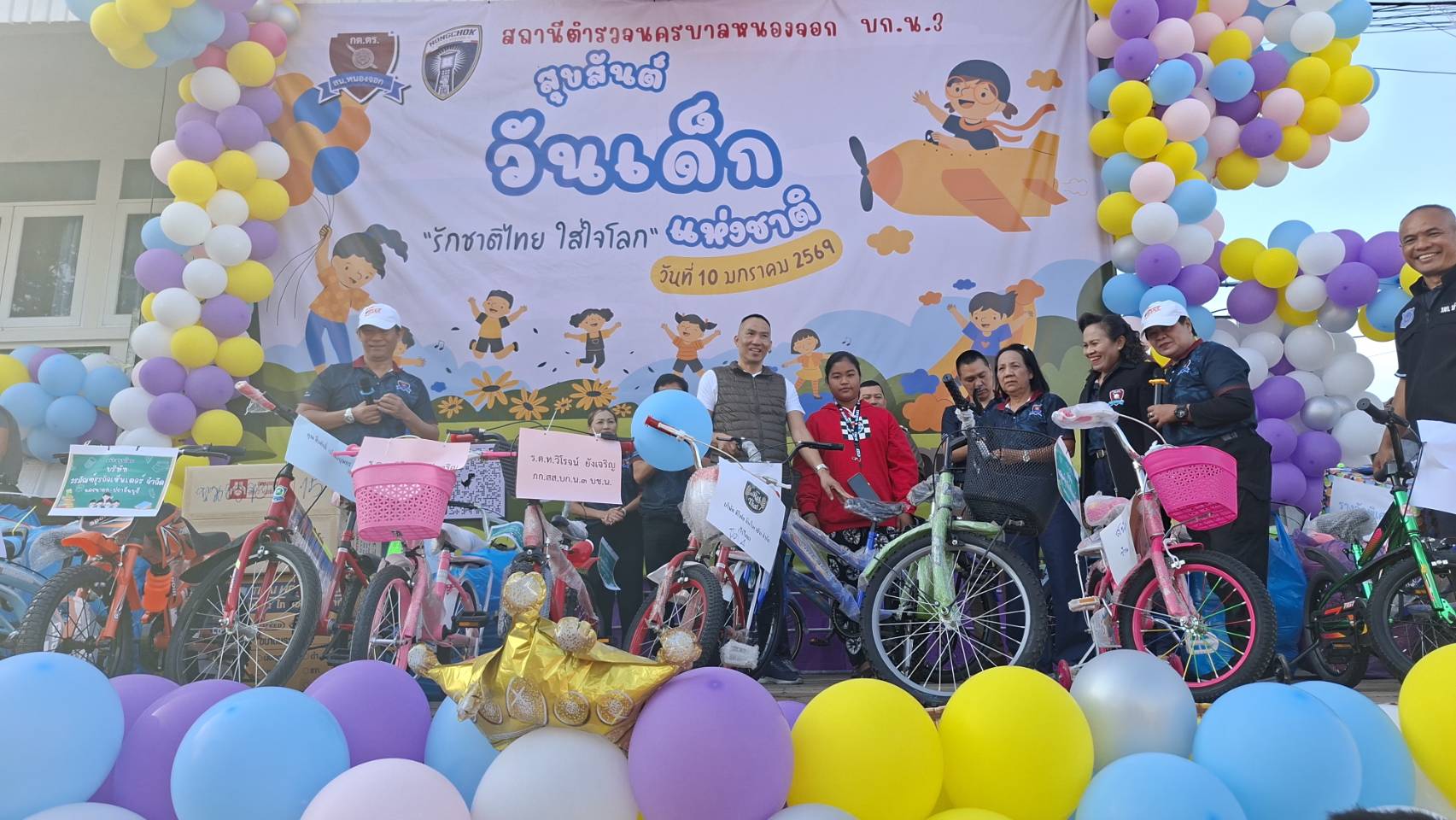 # พล.ต.ต.ประสงค์ อานมณี ผบก.น.3 เป็นประธานเปิดกิจกรรมวันเด็กแห่งชาติประจำปี พ.ศ. 2569 สน.หนองจอก ร่วมกับ คณะ กต.ตร.ฯ โดย ดร.สุวิมล หวังกิจ ประธาน กต.ตร.สน.หนองจอก ,คณะ กต.ตร.สน.ฯ คณะที่ปรึกษา กต.ตร.ฯ, คณะผู้บริหาร สน.หนองจอก โดย พ.ต.อ.สกล อิงอุดมนุกูล ผกก.สน.หนองจอก,พ.ต.ท.มนูน หอมละออ รอง ผกก.ป.ฯ,พ.ต.ท.บุญนำ หอมยิ่ง รอง ผกก.(สอบสวน),พ.ต.ท.วิโรจน์ เทพหนู รอง ผกก.(สอบสวน)ฯ,พ.ต.ท.มานิตย์ คำฟู รอง ผกก.สส.ฯ, พ.ต.ท.ชัยวัฒน์ พริ้งสกุล รอง ผกก.จร.ฯ ณ ลานหน้า สน.หนองจอก มีเด็กเยาวชนและผู้ปกครอง ตลอดจนประชาชนที่ให้การสนับสนุนกิจกรรมวันเด็กฯ เข้าร่วมงานประมาณ 2,000 คน