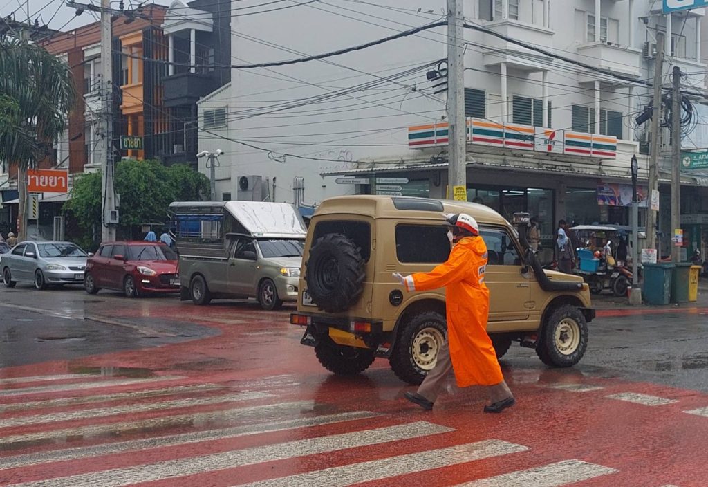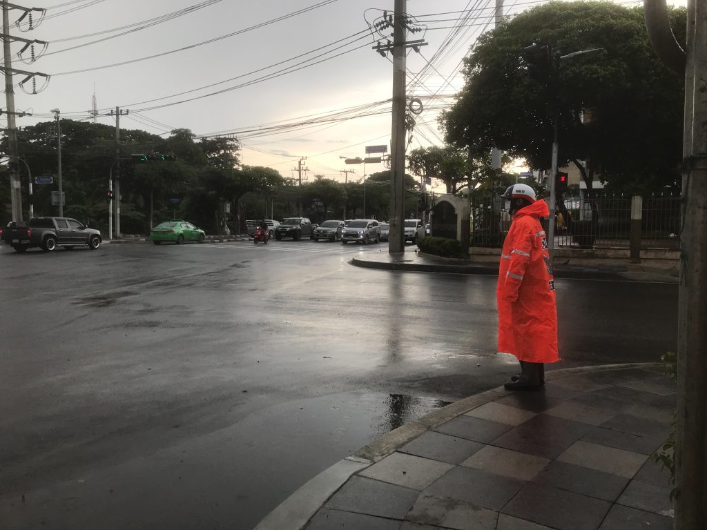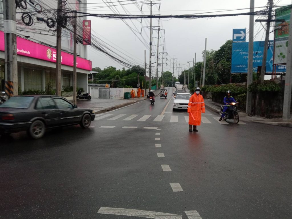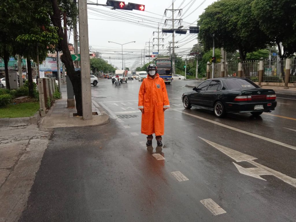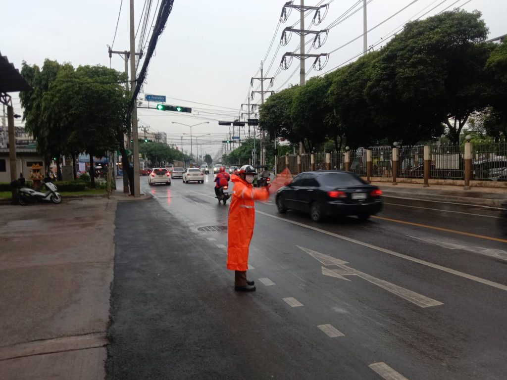 เมื่อวันที่ 9 กรกฎาคม 2566 เวลา 12.00 น. พ.ต.อ.ยิ่งยศ สุวรรณโณ ผกก.สน.หนองจอก มอบหมายให้ พ.ต.ท.ปริยชาต ผลไม้ สว.จร.ฯ ควบคุมการปฏิบัติชุดช่วยเหลือน้ำท่วม อบรมปล่อยแถวและตรวจสอบความพร้อมวัสดุอุปกรณ์ออกปฏิบัติหน้าที่อำนวยความสะดวกการจราจรในพื้นที่มีฝนตกเล็กน้อย ไม่มีน้ำท่วมขัง สภาพการจราจร รถน้อย คล่องตัว