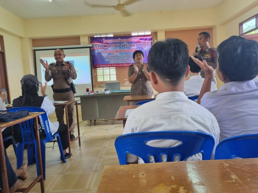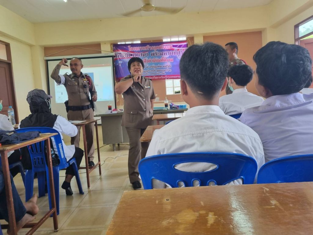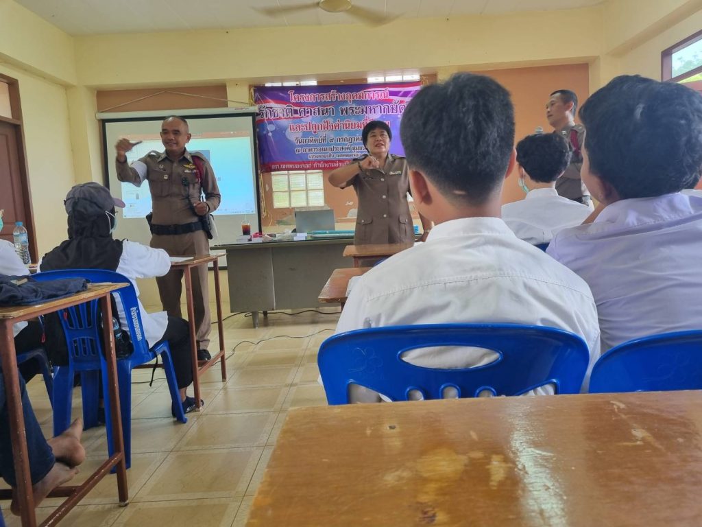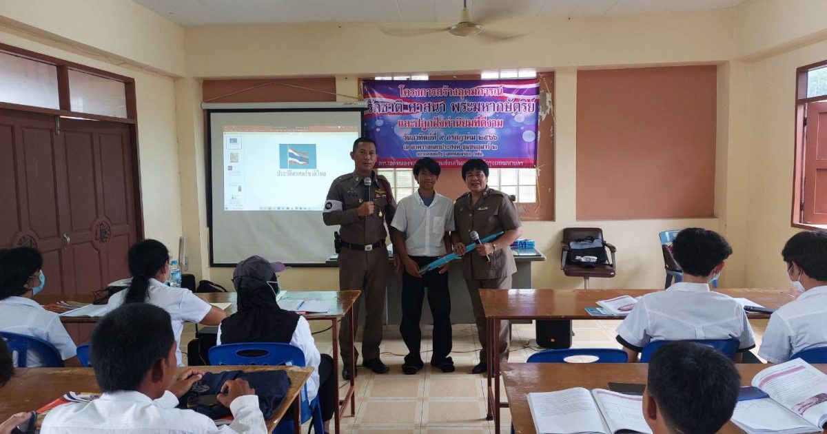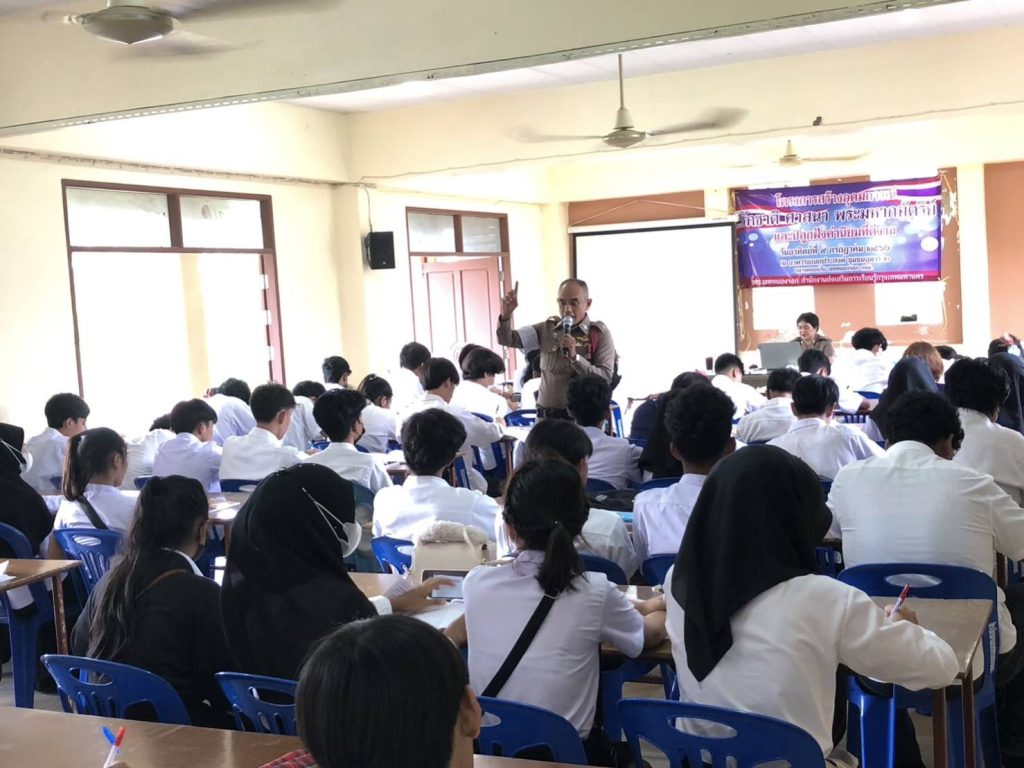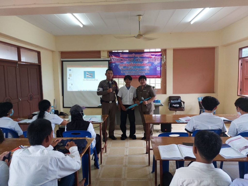 เมื่อวันที่ 9 ก.ค.66 เวลา 08.00 -12.00น. ภายใต้การอำนวยการของ พ.ต.อ.ยิ่งยศ สุวรรณโณ พ.ต.ท.อธิวัฒน์ อธิชัยภูวพงศ์ รอง ผกก.ป.สน.หนองจอก พ.ต.ท.ปริยชาต ผลไม้ สว.จร. สน.หนองจอก มอบหมายให้ ร.ต.ต.สุริยนต์ ขันธมะ,ร.ต.ต.คมศักดิ์ ไทยยัง,ร.ต.ต.หญิง สุวรรณี หวังดุล ร่วมบรรยายพิเศษ โครงการสร้างอุดมการณ์ศาสนา พระมหากษตริย์ให้แก่นักศึกษา สกร.(กศน. เดิม) เขตหนองจอก จำนวน 150 คน ณ อาคารอเนกประสงค์ ชุมชนอุมาร์2 เขตหนองจอก