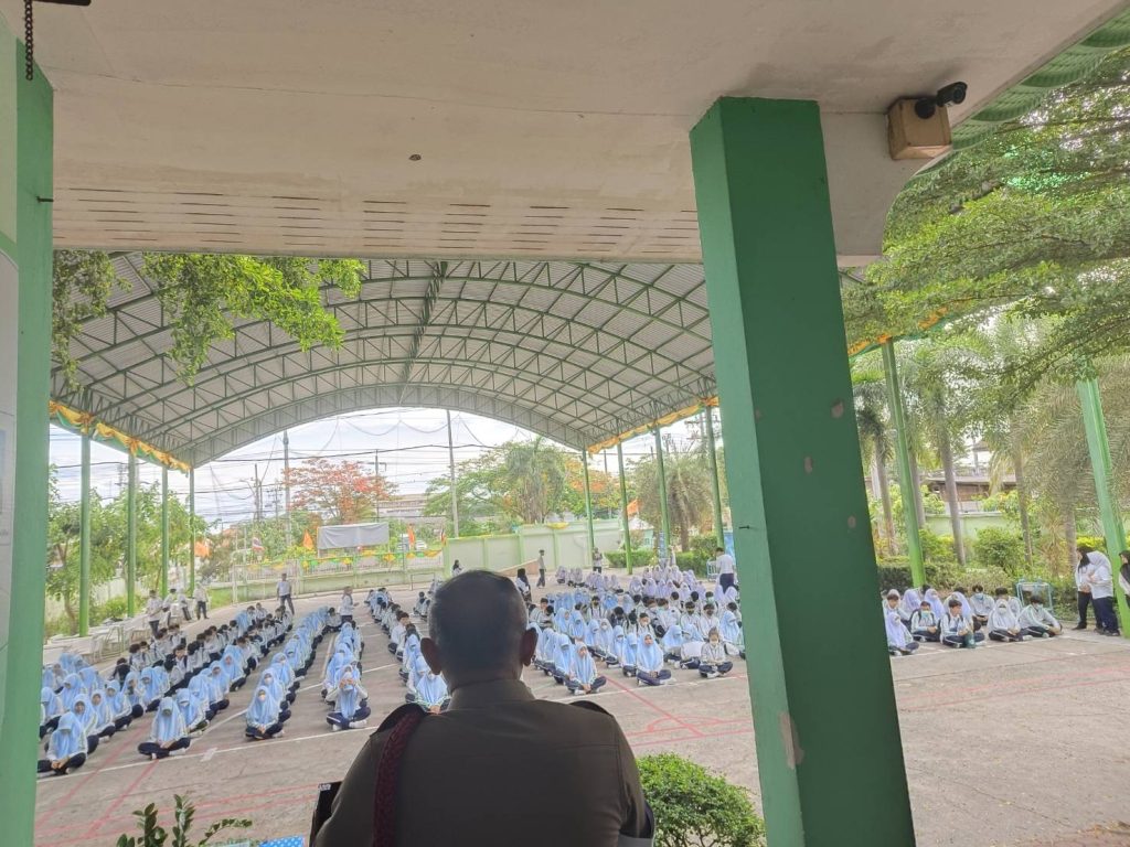 เมื่อวันที่ 26 มิ.ย.66 เวลา 08.00 น. พ.ต.อ.ยิ่งยศ สุวรรณโณ ผกก.สน.หนองจอก มอบหมายให้ พ.ต.ท.ปริยชาต ผลไม้ สว.จร.สน.หนองจอก พร้อมด้วย ร.ต.ต.สุริยนต์ ขันธมะ รอง สว.(จร.)สน.หนองจอก ร.ต.ต.คมศักดิ์ ไทยยัง รอง สว.(จร.)ฯ อบรมให้ความรู้เกี่ยวกับยาเสพติดและกฎหมายแก่นักเรียน รร.ศาสนบริหารธุรกิจ เพื่อป้องกันและแก้ไขปัญหายาเสพติดอย่างยั่งยืน เนื่องในวันต่อต้านยาเสพติดโลก