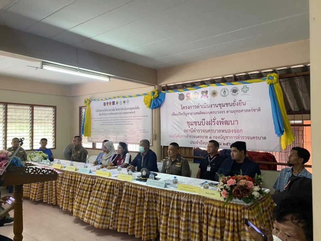 วันที่ 4 เม.ย.66 เวลา 09.30 น. พ.ต.อ.วชิรพงษ์ แก้วดวงรอง.ผบก.น 3 มอบหมายให้ พ.ต.อ.สมศักดิ์ เอี่ยมอิ่ม ผกก.(สอบสวน)ฯ รรท.ผกก.สน.หนองจอก(ประธานในพิธี) พ.ต.ท.อธิวัฒน์ อธิชัยภูวพงศ์ รอง ผกก.ป.สน.หนองจอก พ.ต.ท.อธิช์ลักษณ์ สาระศาลิน รอง ผกก.สส.สน.หนองจอก พ.ต.ท.สมาน บ่อชล สว.อก.สน.หนองจอก พ.ต.ท.ไพโรจน์ ชื่นชมน้อยสว.สส.สน.หนองจอก พ.ต.ต.สมนึก ภู่ประภา สวป.สน.หนองจอก และชุดปฏิบัติการชุมชนยั่งยืนฯสน.หนองจอก พร้อมด้วย นายพิสิษฐ์ ดิษฐ์บรรจง ผช.ผอ.เขตหนองจอก ดร.สุวิมล หวังกิจ ประธาน.กต.ตร.สน.หนองจอก นายอาดัม มะดะเรส รองประธานที่ปรึกษา กต.ตร.สน.หนองจอก น.ส.กิตติยา ทองสวัสดิ์ ผู้แทน ผอ.ศูนย์บริการสาธาณะสุข 44 น.ส.วิลาสินี นนทรีย์ นักพัฒนาการชุมชนเขตหนองจอก นายสุรชัย ดาเเหม็ง ตัวแทนอิหม่ามมัสยิดดารุ้ลนาอีม นายมณฑล นาทอง