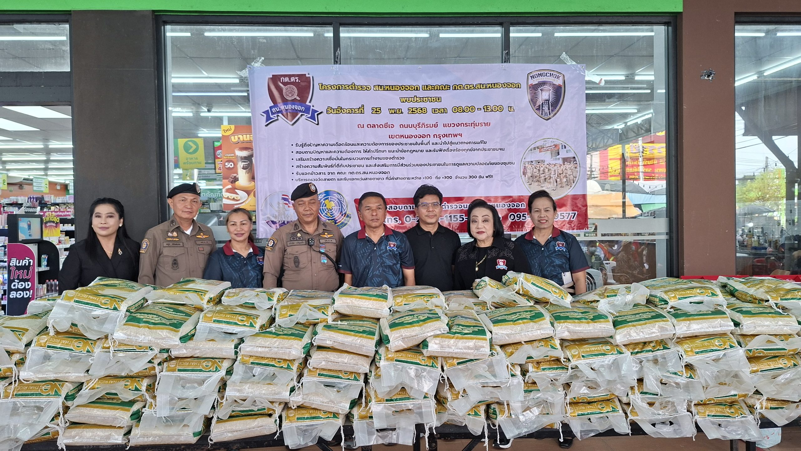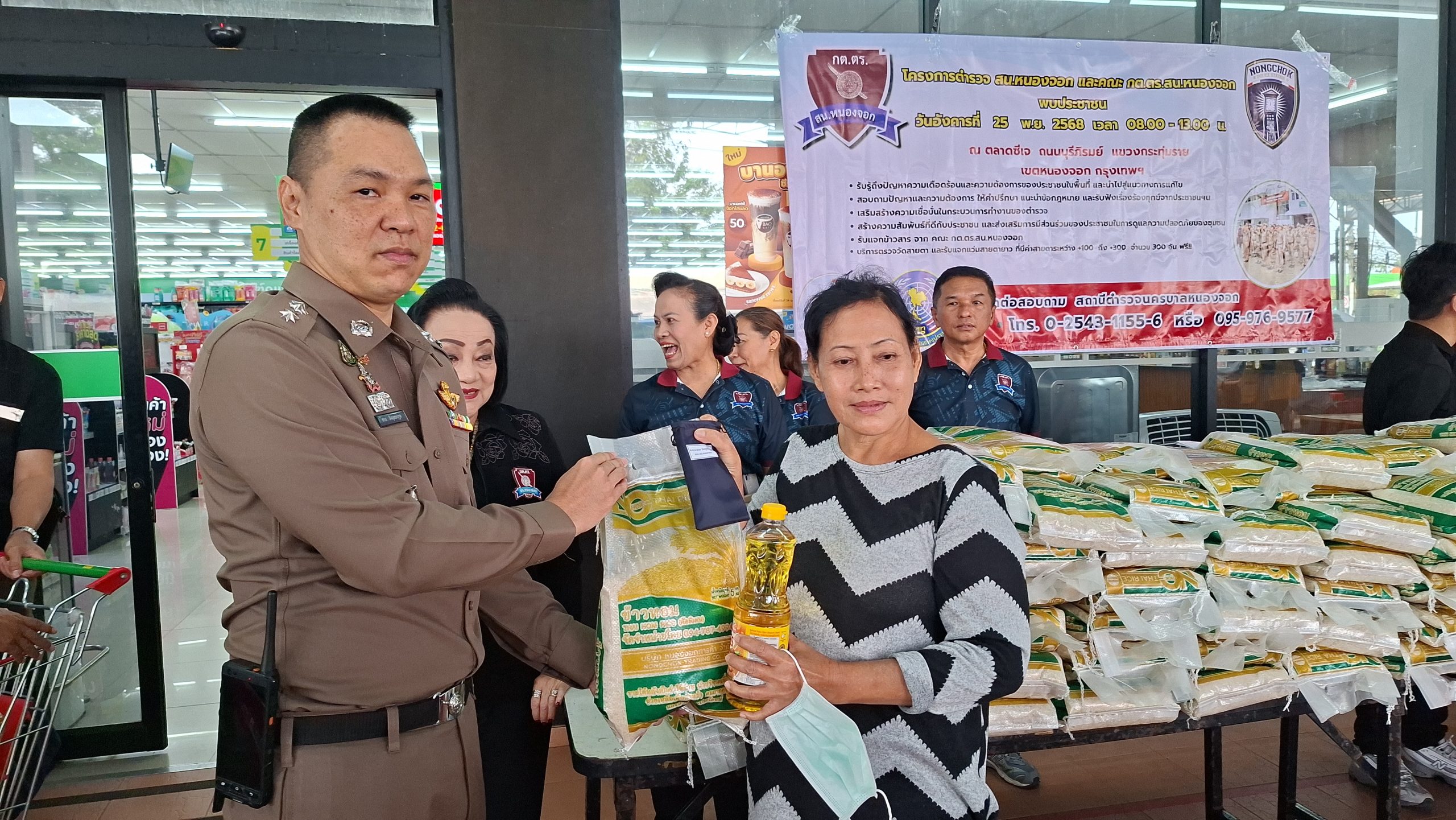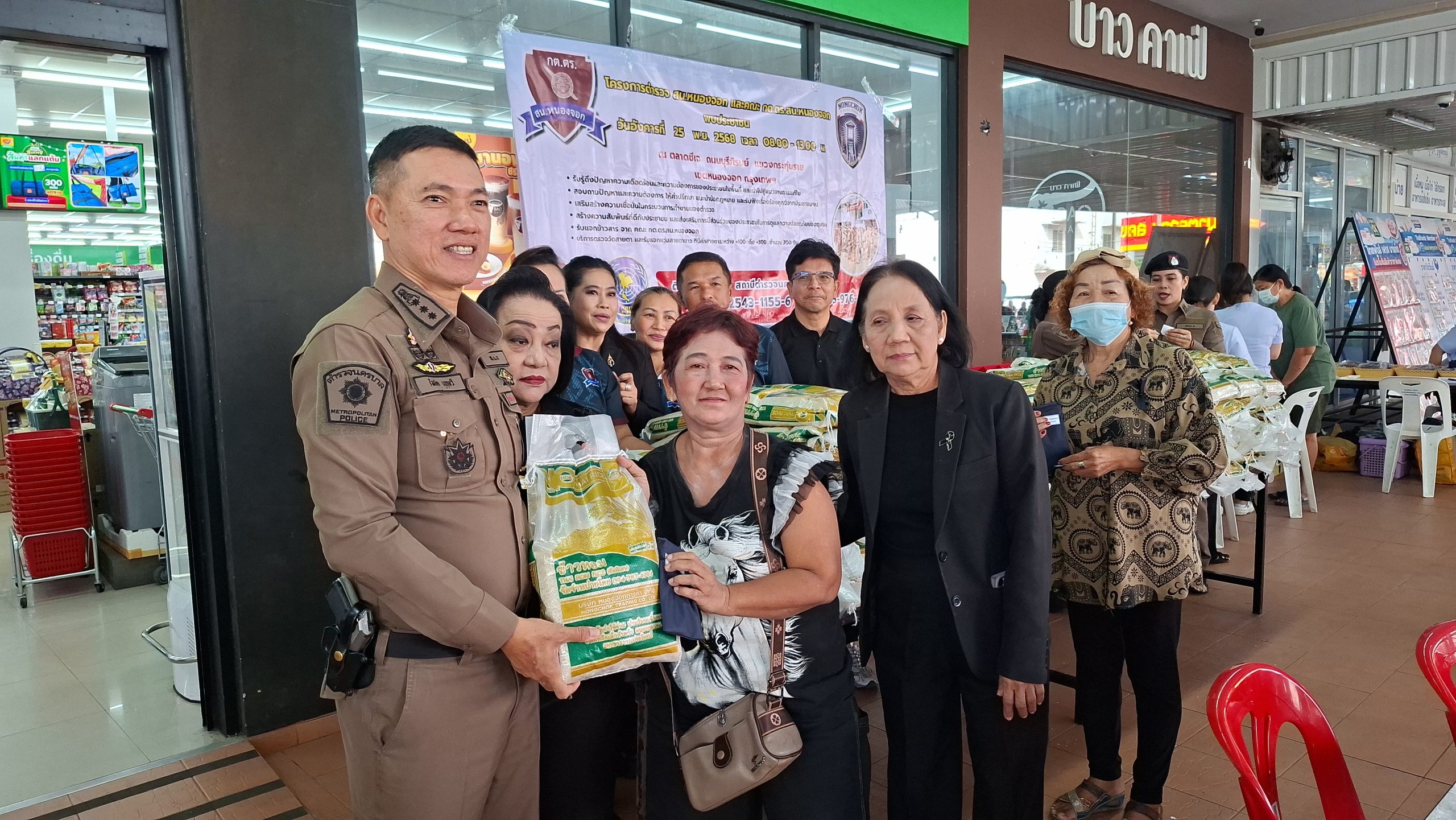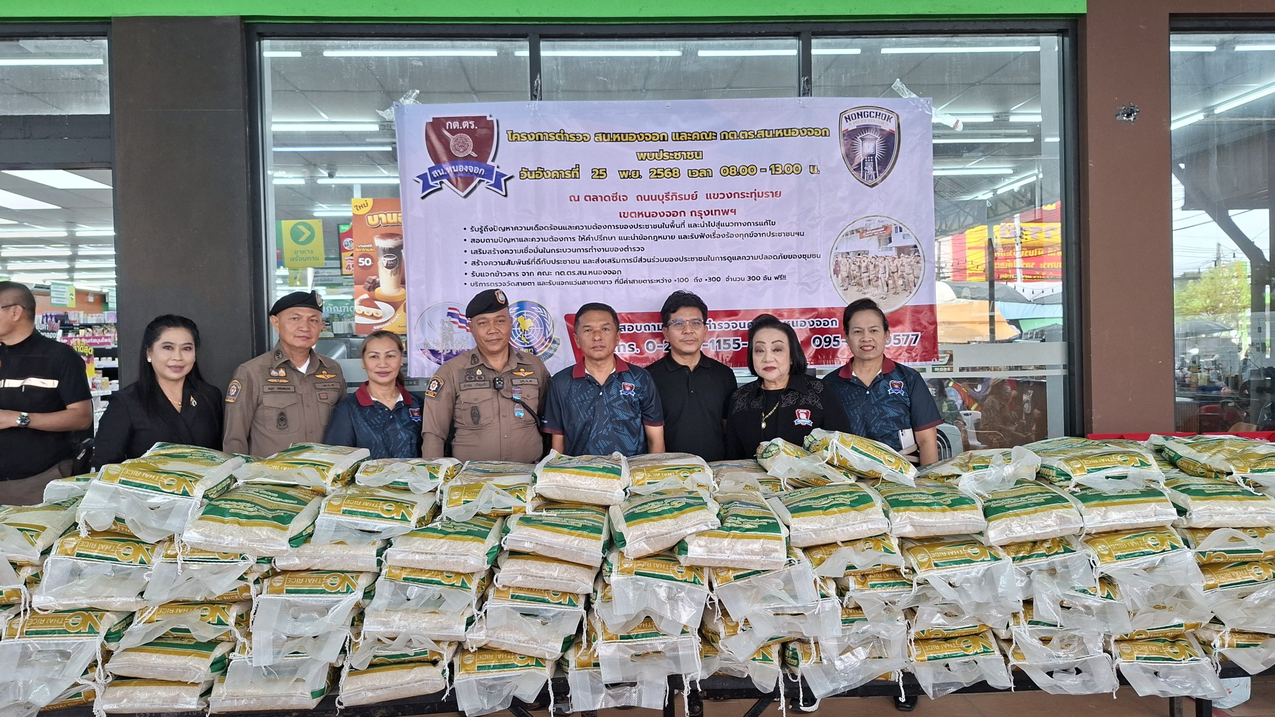 วันอังคารที่ 25 พ.ย. 2568 เวลา 08.00 – 13.00 น. ณ ตลาดซีเจ ถ.บุรีภิรมย์ พ.ต.อ.โฆษิต บุญทวี รอง ผบก.น.3 เป็นประธานเปิดโครงการตำรวจ และคณะ กต.ตร.สน.หนองจอก พบประชาชน พ.ต.อ.สกล อิงอุดมนุกูล ผกก.สน.หนองจอก ดร.สุวิมล หวังกิจ ประธาน กต.ตร.สน.หนองจอก และคณะ กต.ตร.สน.หนองจอก ข้าราชการตำรวจ สน.หนองจอก ประชาชนชาวหนองจอก ร่วมกิจกรรม โดยมีวัตถุประสงค์เพื่อ รับรู้ถึงปัญหาความเดือดร้อนและความต้องการของประชาชนในพื้นที่ และนำไปสู่แนวทางการแก้ไข สอบถามปัญหาและความต้องการ ให้คำปรึกษา แนะนำข้อกฎหมาย และรับฟังเรื่องร้องทุกข์จากประชาชนฯ เสริมสร้างความเชื่อมั่นในกระบวนการทำงานของตำรวจ สร้างความสัมพันธ์ที่ดีกับประชาชน และส่งเสริมการมีส่วนร่วมของประชาชนในการดูแลความปลอดภัยของชุมชน ในงาน คณะ กต.ตร.ได้มอบ ข้าวสารและน้ำมันพืช บริษัทยามาฮ่าวรภัณฑ์ ปราจีนบุรี บริการตรวจวัดสายตา และแจกแว่นตา ค่าสายตาระหว่าง +1.00 D ถึง +3.00 D จำนวน 300 อัน แก่ประชาชนที่มาร่วมงาน ฟร๊ มีผู้เข้าร่วมงานประมาณ 300 คน และมีการประชาสัมพันธ์โครงการประเมิน ITA ของ สน.หนองจอก ให้กับประชาชนที่มาร่วมงานทราบ