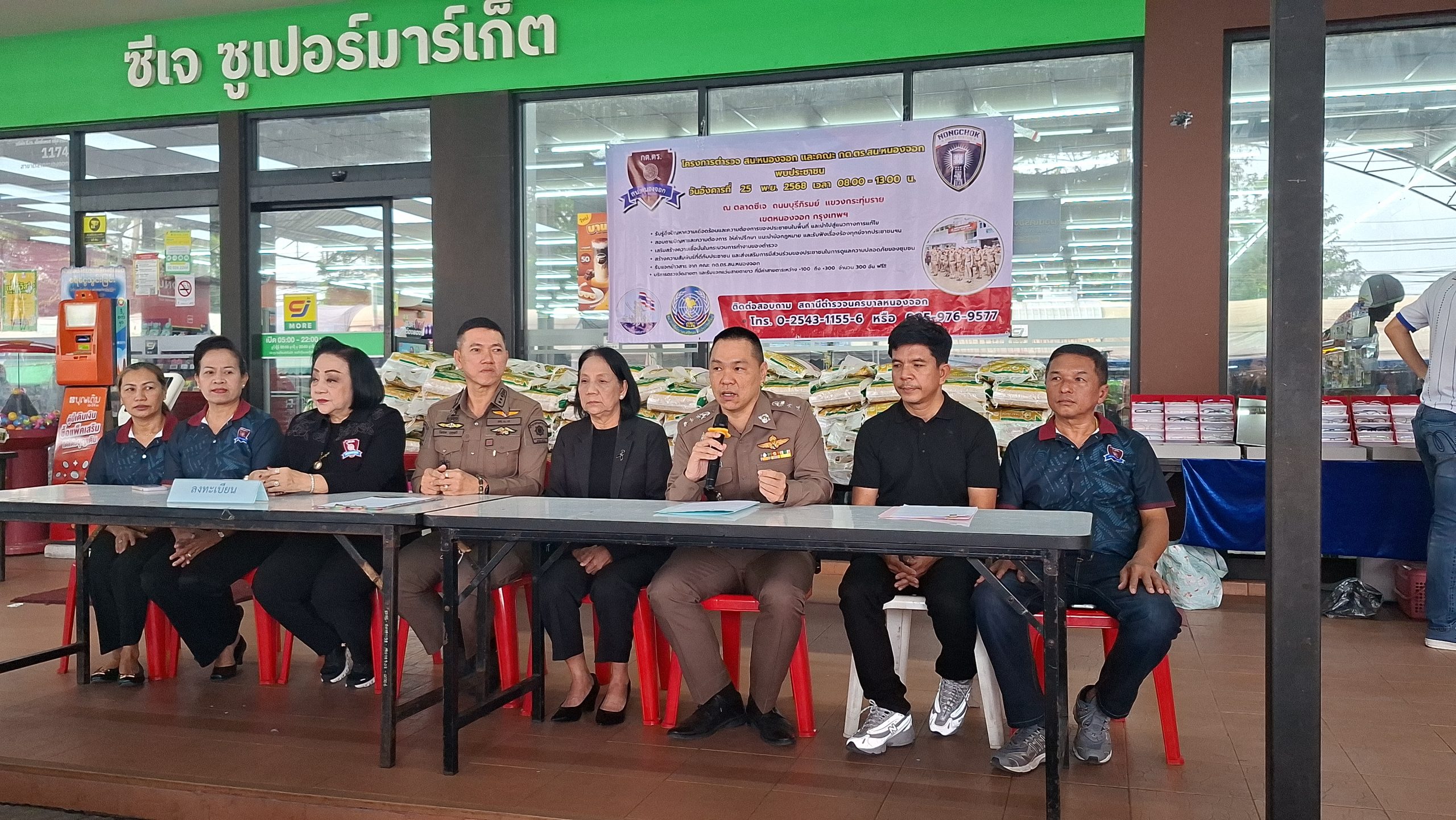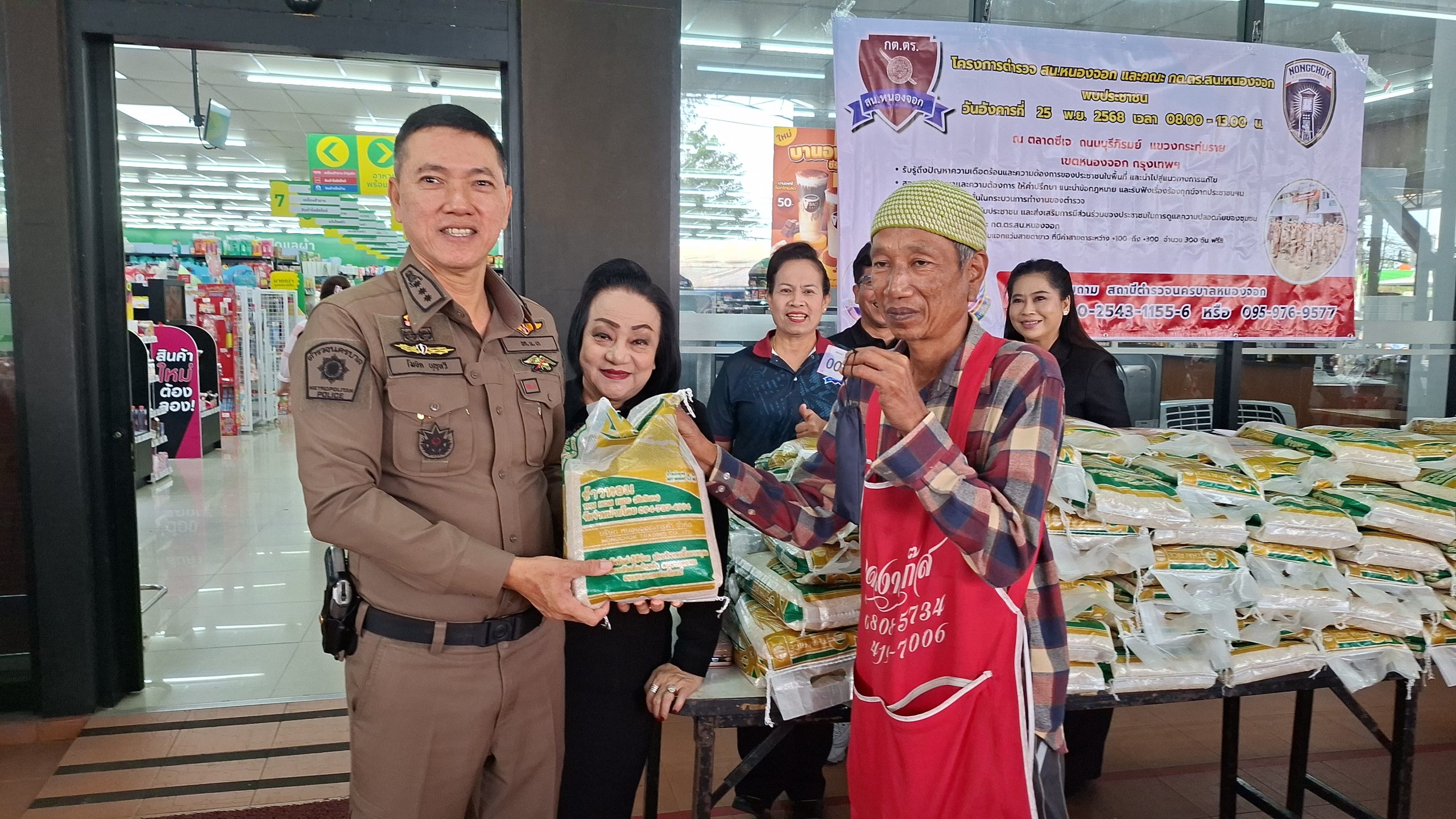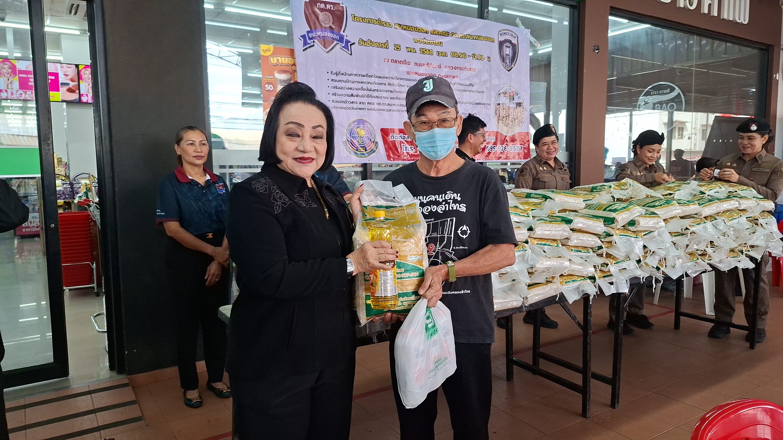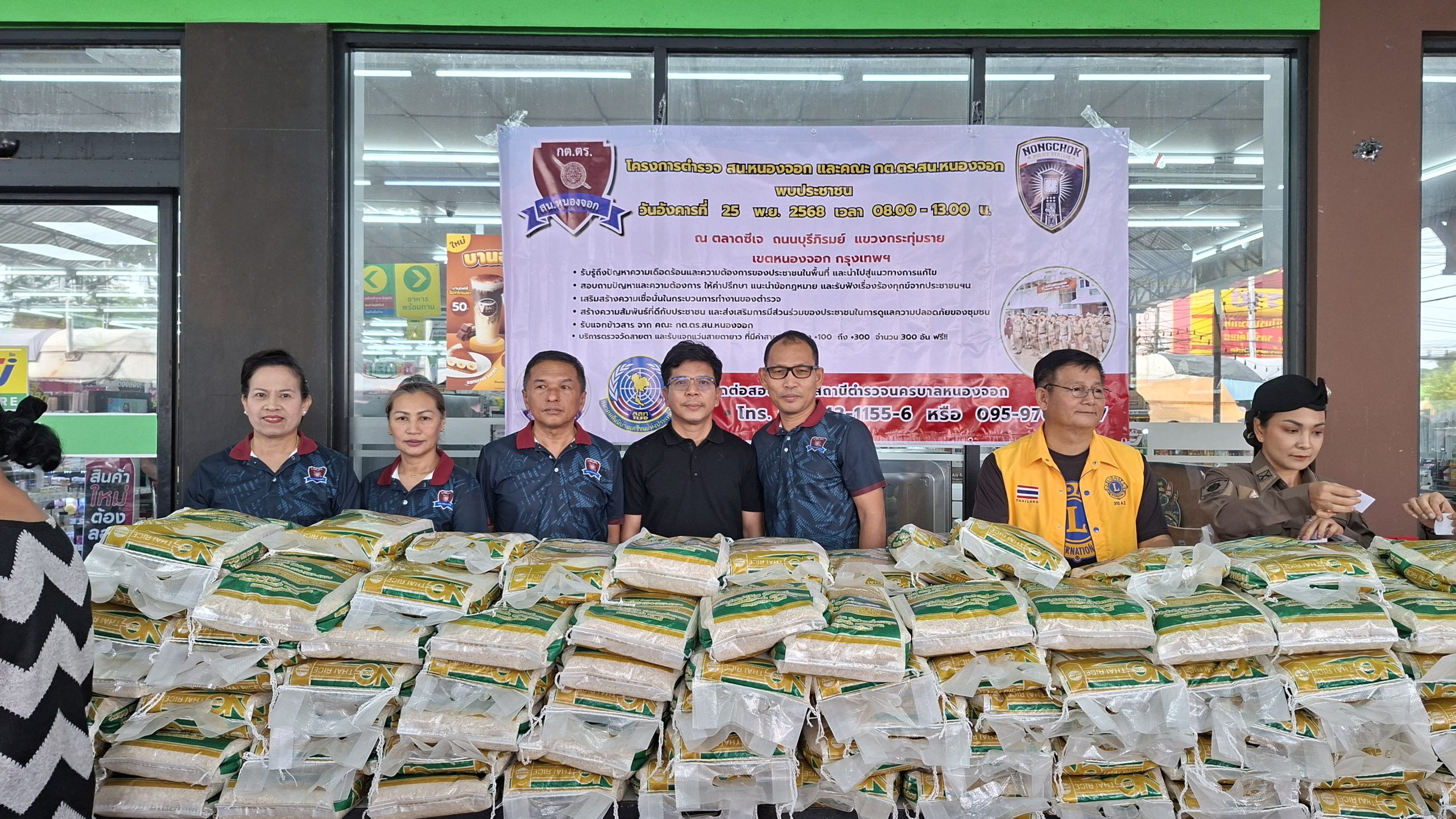 วันอังคารที่ 25 พ.ย. 2568 เวลา 08.00 – 13.00 น. ณ ตลาดซีเจ ถ.บุรีภิรมย์ พ.ต.อ.โฆษิต บุญทวี รอง ผบก.น.3 เป็นประธานเปิดโครงการตำรวจ และคณะ กต.ตร.สน.หนองจอก พบประชาชน พ.ต.อ.สกล อิงอุดมนุกูล ผกก.สน.หนองจอก ดร.สุวิมล หวังกิจ ประธาน กต.ตร.สน.หนองจอก และคณะ กต.ตร.สน.หนองจอก ข้าราชการตำรวจ สน.หนองจอก ประชาชนชาวหนองจอก ร่วมกิจกรรม โดยมีวัตถุประสงค์เพื่อ รับรู้ถึงปัญหาความเดือดร้อนและความต้องการของประชาชนในพื้นที่ และนำไปสู่แนวทางการแก้ไข สอบถามปัญหาและความต้องการ ให้คำปรึกษา แนะนำข้อกฎหมาย และรับฟังเรื่องร้องทุกข์จากประชาชนฯ เสริมสร้างความเชื่อมั่นในกระบวนการทำงานของตำรวจ สร้างความสัมพันธ์ที่ดีกับประชาชน และส่งเสริมการมีส่วนร่วมของประชาชนในการดูแลความปลอดภัยของชุมชน ในงาน คณะ กต.ตร.ได้มอบ ข้าวสารและน้ำมันพืช บริษัทยามาฮ่าวรภัณฑ์ ปราจีนบุรี บริการตรวจวัดสายตา และแจกแว่นตา ค่าสายตาระหว่าง +1.00 D ถึง +3.00 D จำนวน 300 อัน แก่ประชาชนที่มาร่วมงาน ฟร๊ มีผู้เข้าร่วมงานประมาณ 300 คน และมีการประชาสัมพันธ์โครงการประเมิน ITA ของ สน.หนองจอก ให้กับประชาชนที่มาร่วมงานทราบ
