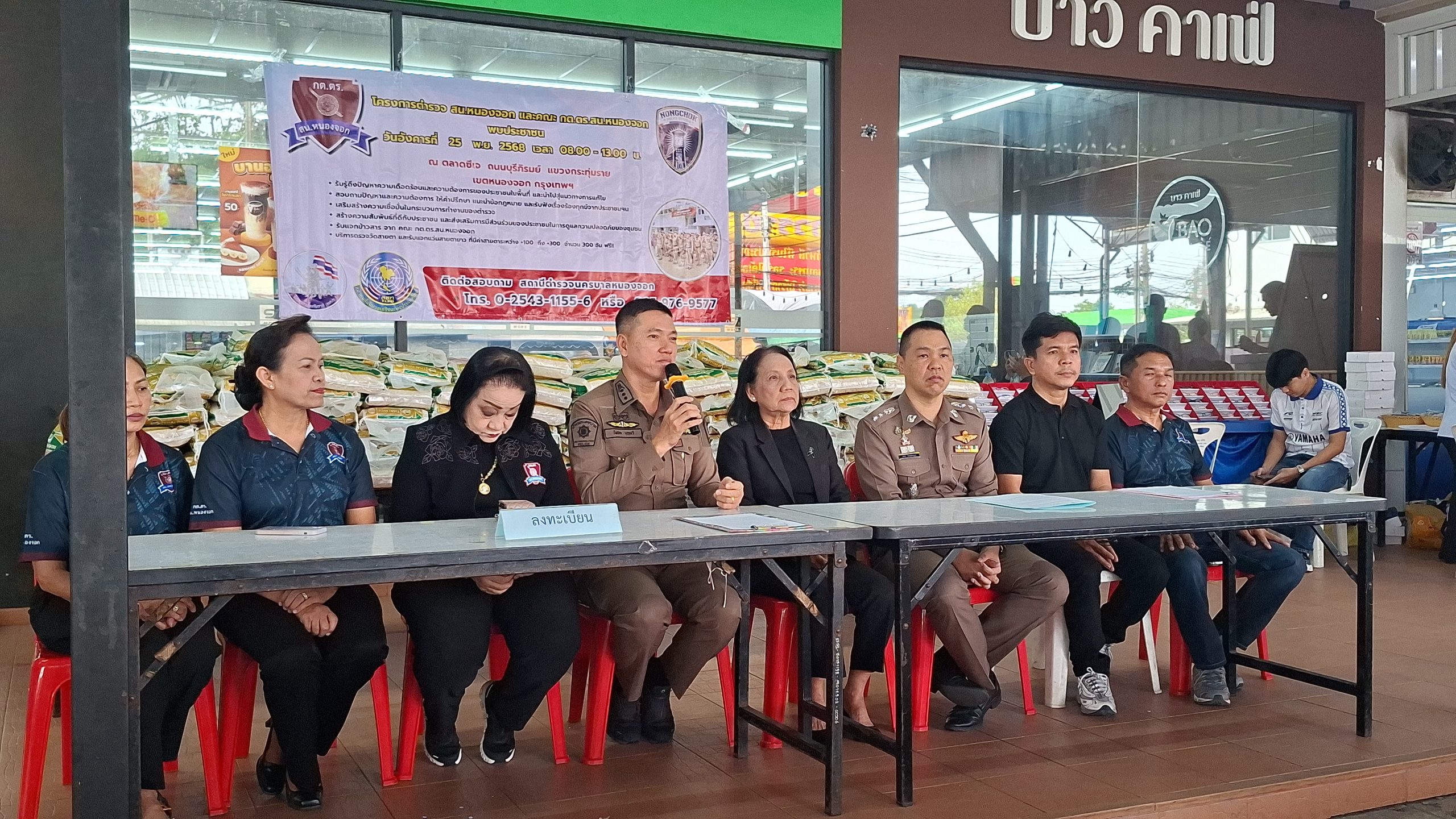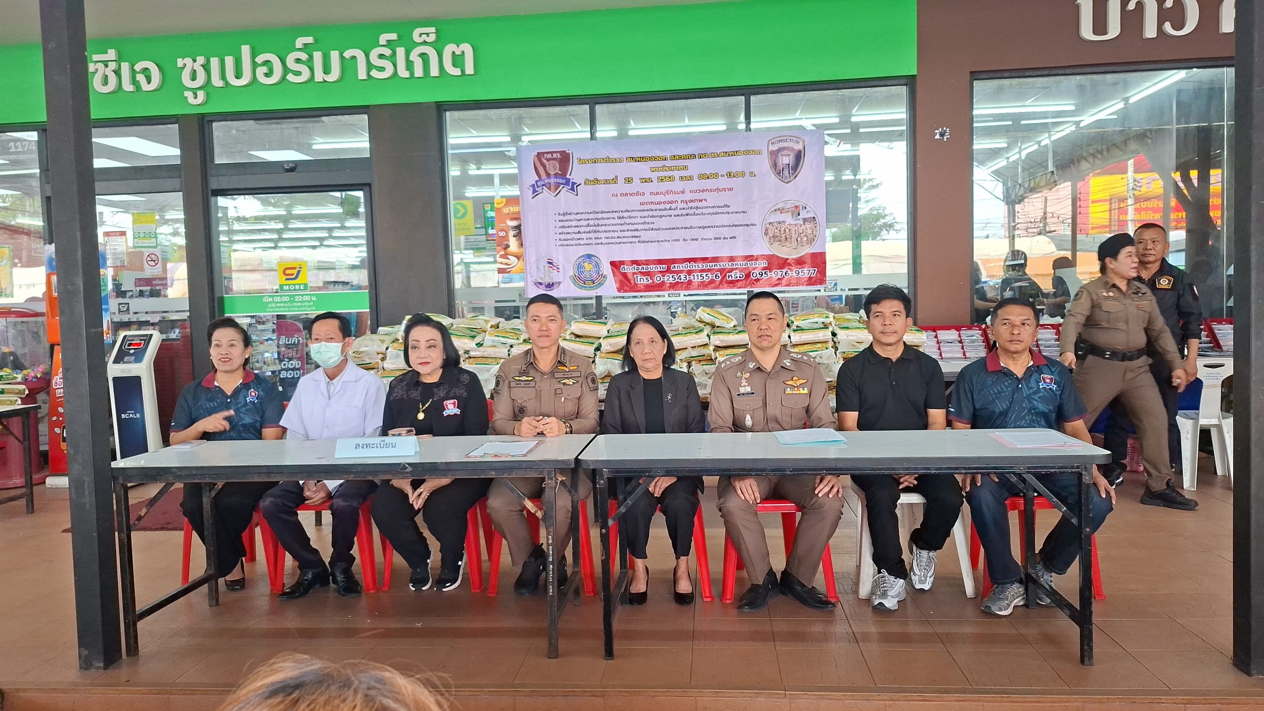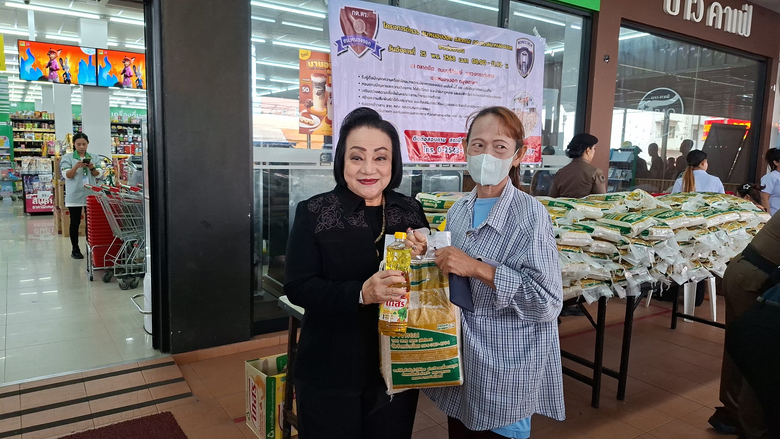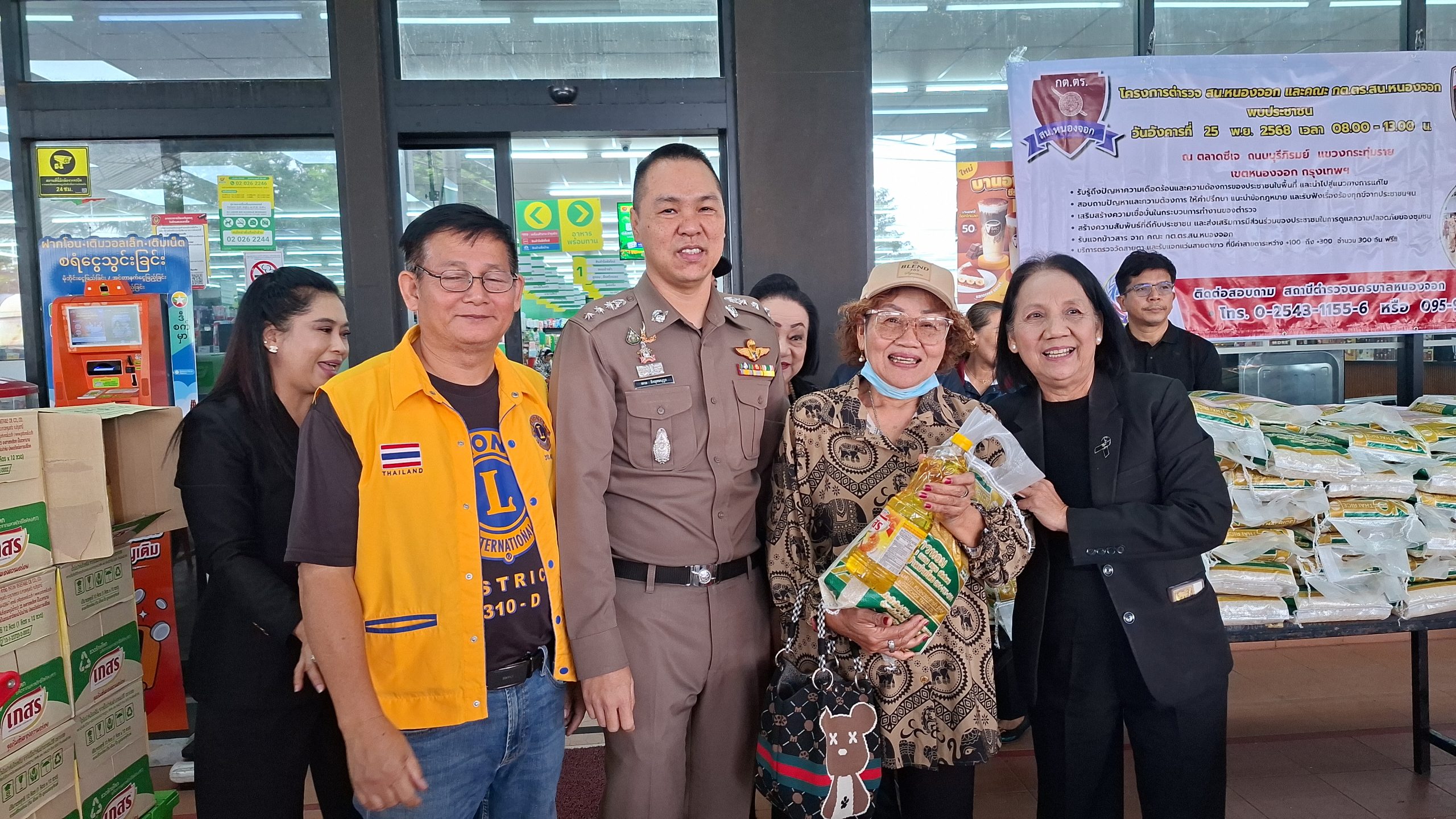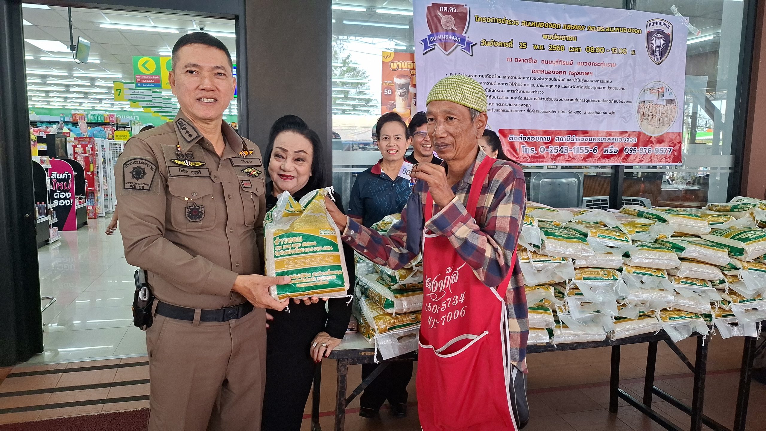 วันอังคารที่ 25 พ.ย. 2568 เวลา 08.00 – 13.00 น. ณ ตลาดซีเจ ถ.บุรีภิรมย์ พ.ต.อ.โฆษิต บุญทวี รอง ผบก.น.3 เป็นประธานเปิดโครงการตำรวจ และคณะ กต.ตร.สน.หนองจอก พบประชาชน พ.ต.อ.สกล อิงอุดมนุกูล ผกก.สน.หนองจอก ดร.สุวิมล หวังกิจ ประธาน กต.ตร.สน.หนองจอก และคณะ กต.ตร.สน.หนองจอก ข้าราชการตำรวจ สน.หนองจอก ประชาชนชาวหนองจอก ร่วมกิจกรรม โดยมีวัตถุประสงค์เพื่อ รับรู้ถึงปัญหาความเดือดร้อนและความต้องการของประชาชนในพื้นที่ และนำไปสู่แนวทางการแก้ไข สอบถามปัญหาและความต้องการ ให้คำปรึกษา แนะนำข้อกฎหมาย และรับฟังเรื่องร้องทุกข์จากประชาชนฯ เสริมสร้างความเชื่อมั่นในกระบวนการทำงานของตำรวจ สร้างความสัมพันธ์ที่ดีกับประชาชน และส่งเสริมการมีส่วนร่วมของประชาชนในการดูแลความปลอดภัยของชุมชน ในงาน คณะ กต.ตร.ได้มอบ ข้าวสารและน้ำมันพืช บริษัทยามาฮ่าวรภัณฑ์ ปราจีนบุรี บริการตรวจวัดสายตา และแจกแว่นตา ค่าสายตาระหว่าง +1.00 D ถึง +3.00 D จำนวน 300 อัน แก่ประชาชนที่มาร่วมงาน ฟร๊ มีผู้เข้าร่วมงานประมาณ 300 คน และมีการประชาสัมพันธ์โครงการประเมิน ITA ของ สน.หนองจอก ให้กับประชาชนที่มาร่วมงานทราบ