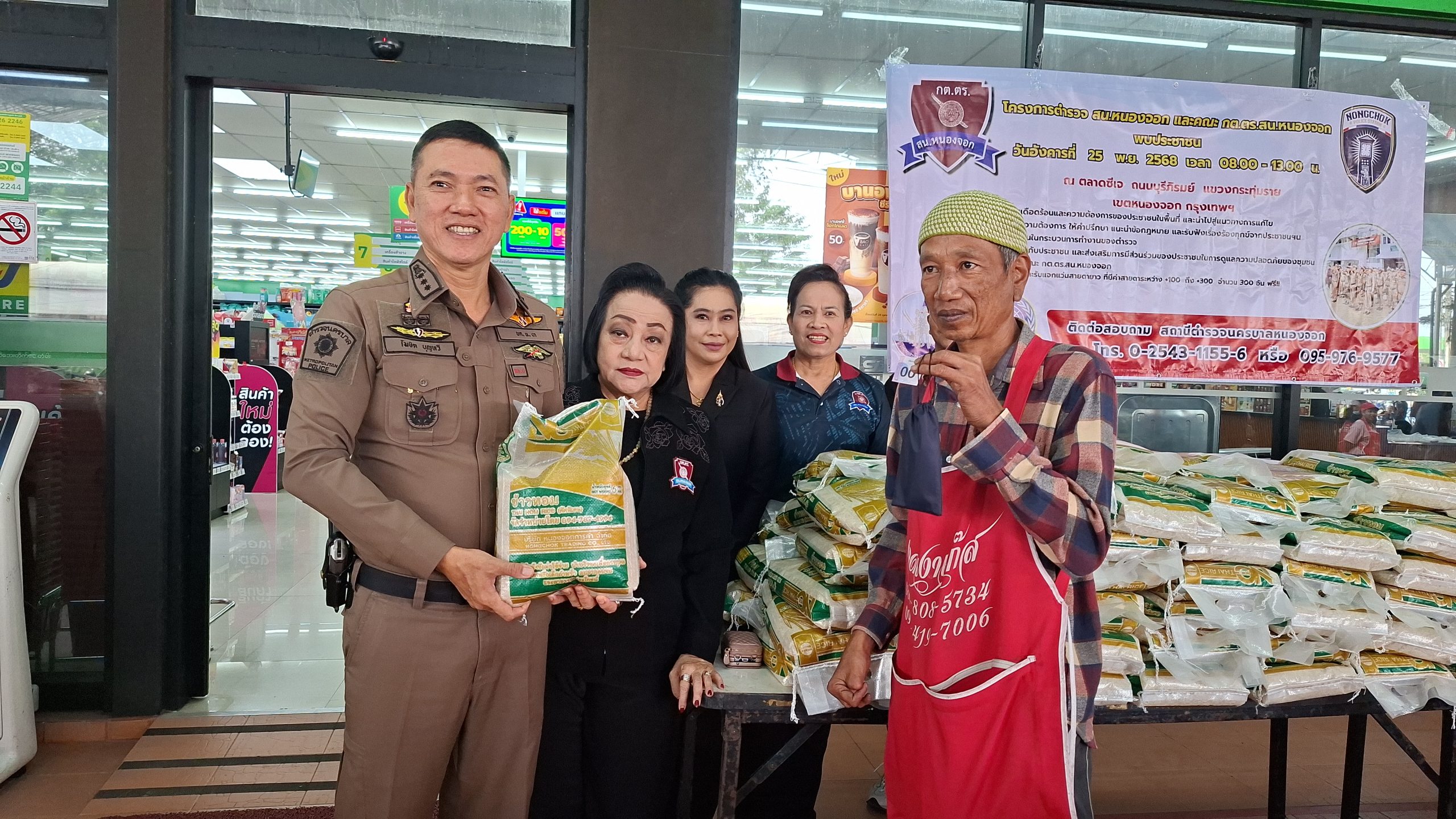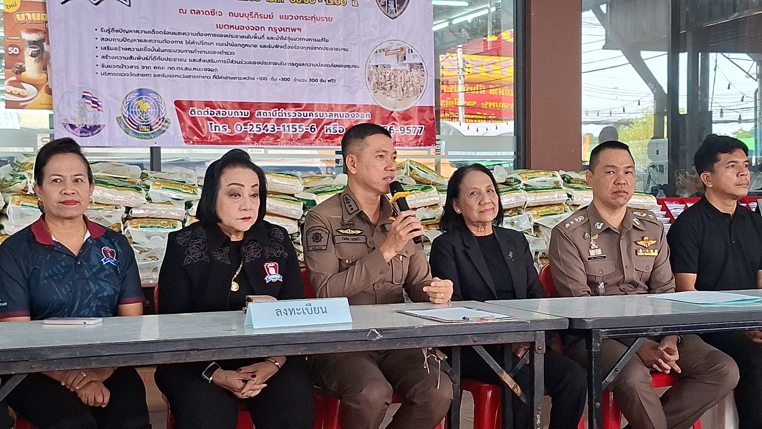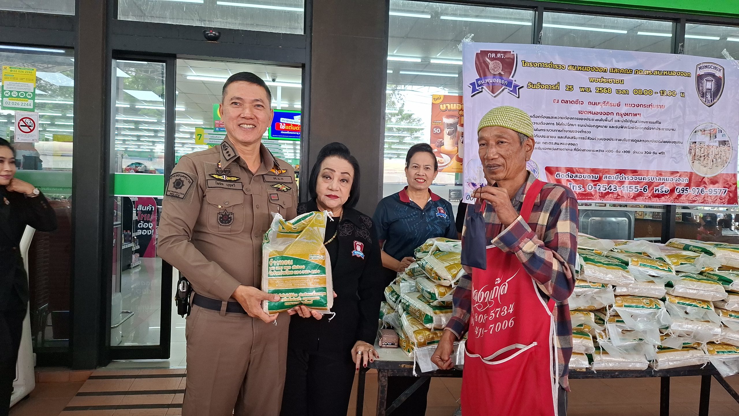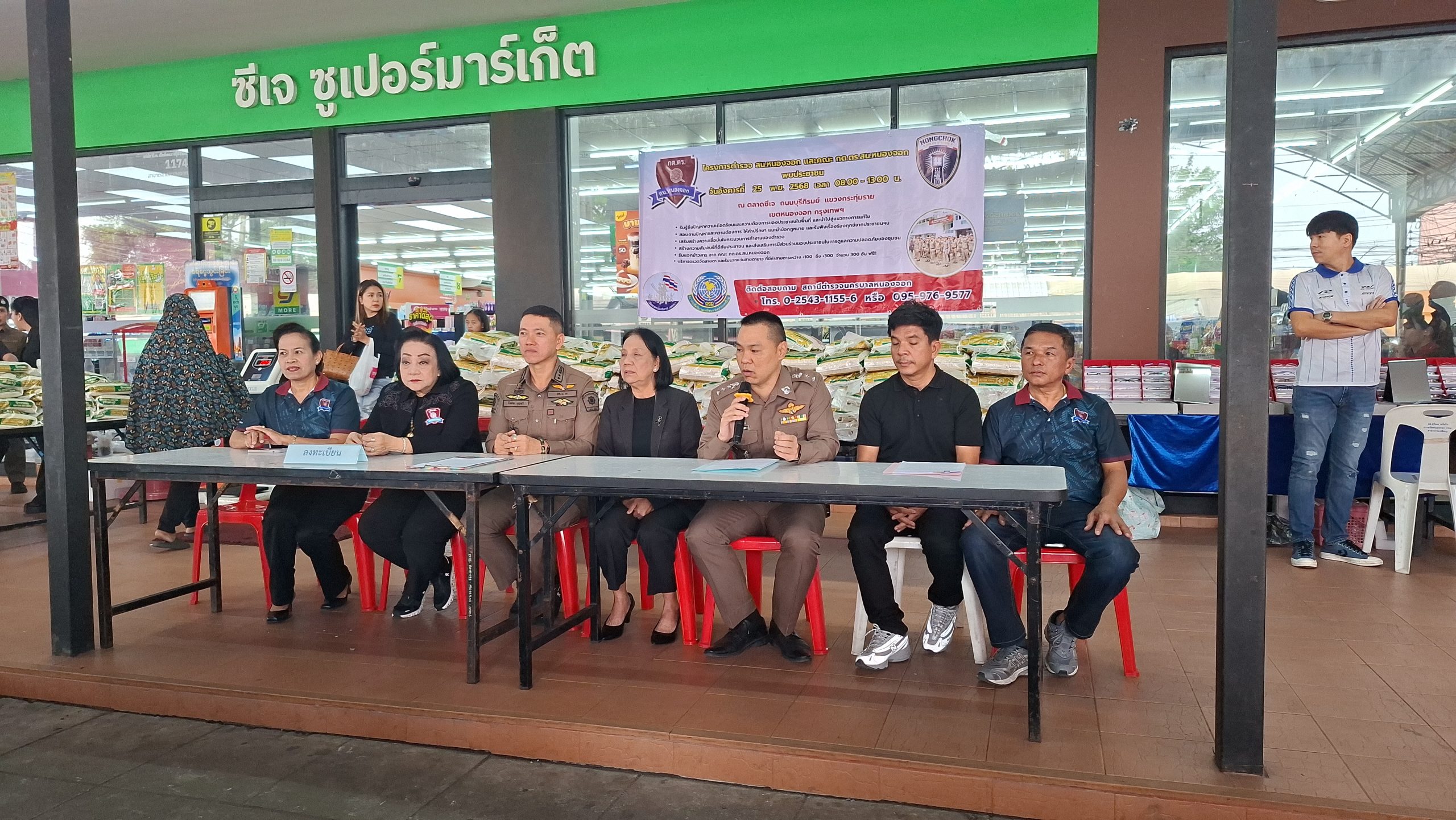 วันอังคารที่ 25 พ.ย. 2568 เวลา 08.00 – 13.00 น. ณ ตลาดซีเจ ถ.บุรีภิรมย์ พ.ต.อ.โฆษิต บุญทวี รอง ผบก.น.3 เป็นประธานเปิดโครงการตำรวจ และคณะ กต.ตร.สน.หนองจอก พบประชาชน พ.ต.อ.สกล อิงอุดมนุกูล ผกก.สน.หนองจอก ดร.สุวิมล หวังกิจ ประธาน กต.ตร.สน.หนองจอก และคณะ กต.ตร.สน.หนองจอก ข้าราชการตำรวจ สน.หนองจอก ประชาชนชาวหนองจอก ร่วมกิจกรรม โดยมีวัตถุประสงค์เพื่อ รับรู้ถึงปัญหาความเดือดร้อนและความต้องการของประชาชนในพื้นที่ และนำไปสู่แนวทางการแก้ไข สอบถามปัญหาและความต้องการ ให้คำปรึกษา แนะนำข้อกฎหมาย และรับฟังเรื่องร้องทุกข์จากประชาชนฯ เสริมสร้างความเชื่อมั่นในกระบวนการทำงานของตำรวจ สร้างความสัมพันธ์ที่ดีกับประชาชน และส่งเสริมการมีส่วนร่วมของประชาชนในการดูแลความปลอดภัยของชุมชน ในงาน คณะ กต.ตร.ได้มอบ ข้าวสารและน้ำมันพืช บริษัทยามาฮ่าวรภัณฑ์ ปราจีนบุรี บริการตรวจวัดสายตา และแจกแว่นตา ค่าสายตาระหว่าง +1.00 D ถึง +3.00 D จำนวน 300 อัน แก่ประชาชนที่มาร่วมงาน ฟร๊ มีผู้เข้าร่วมงานประมาณ 300 คน และมีการประชาสัมพันธ์โครงการประเมิน ITA ของ สน.หนองจอก ให้กับประชาชนที่มาร่วมงานทราบ