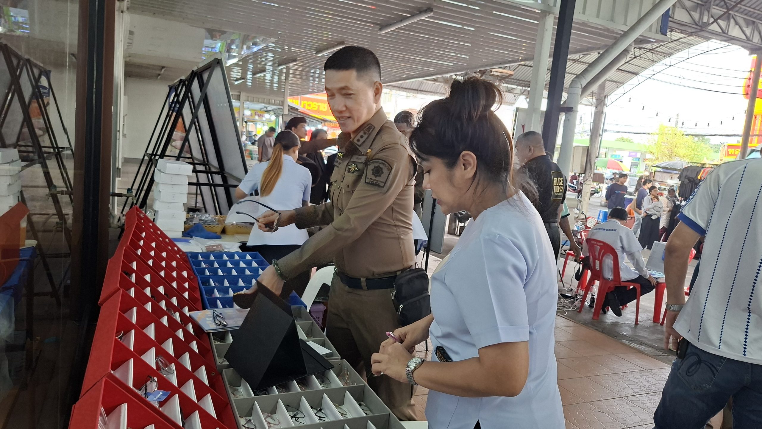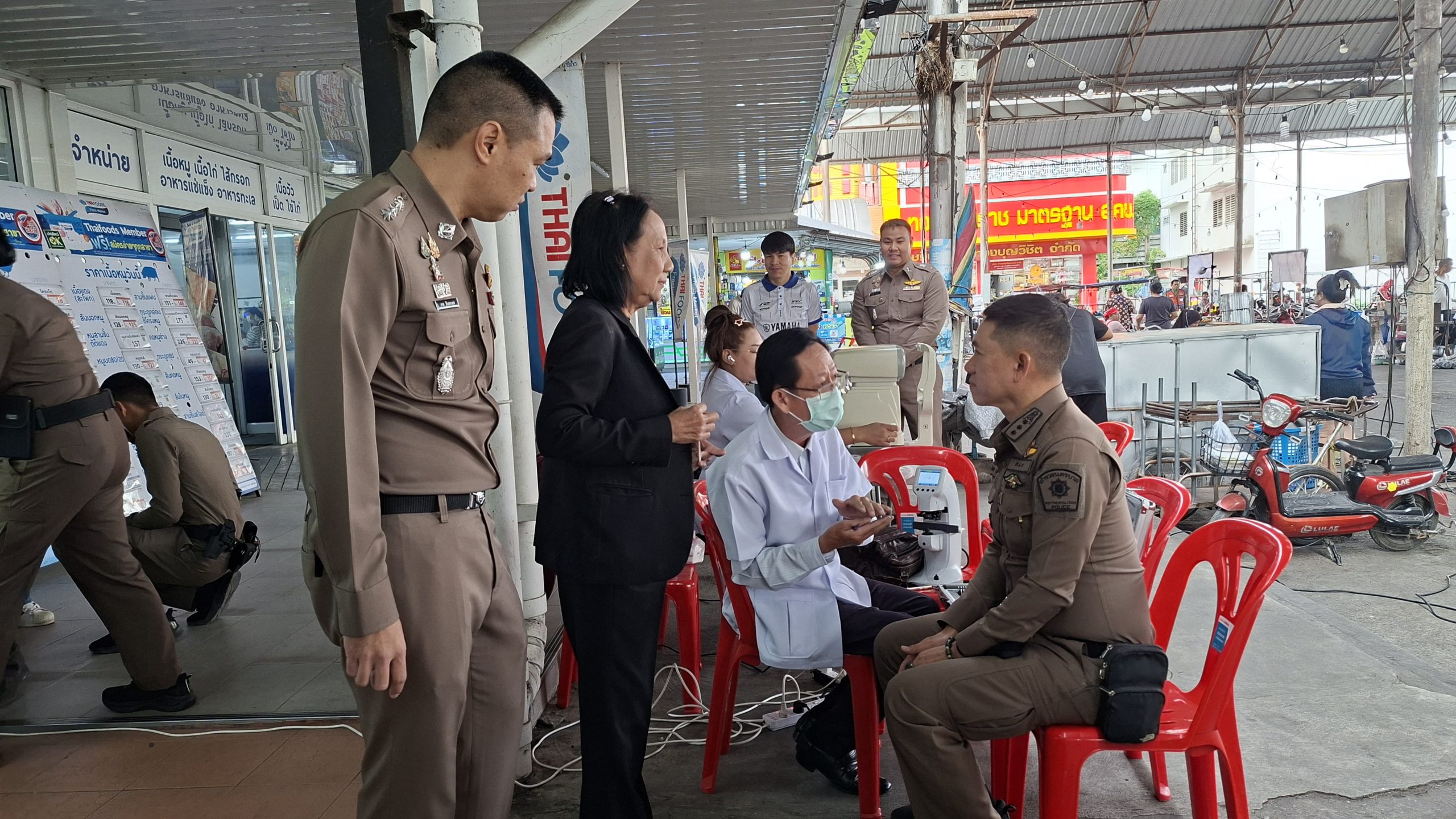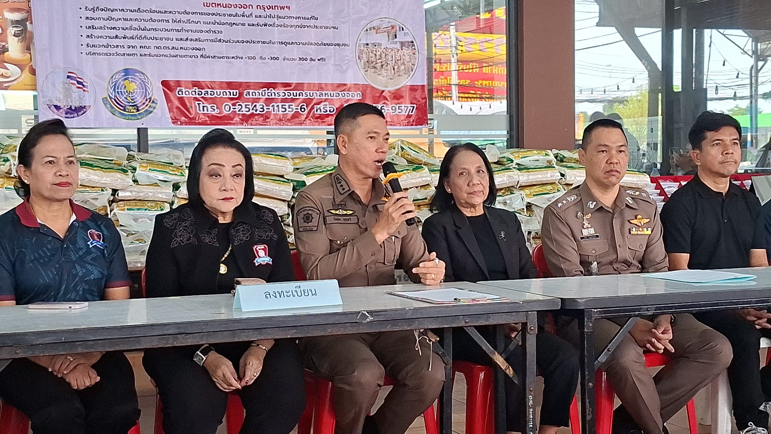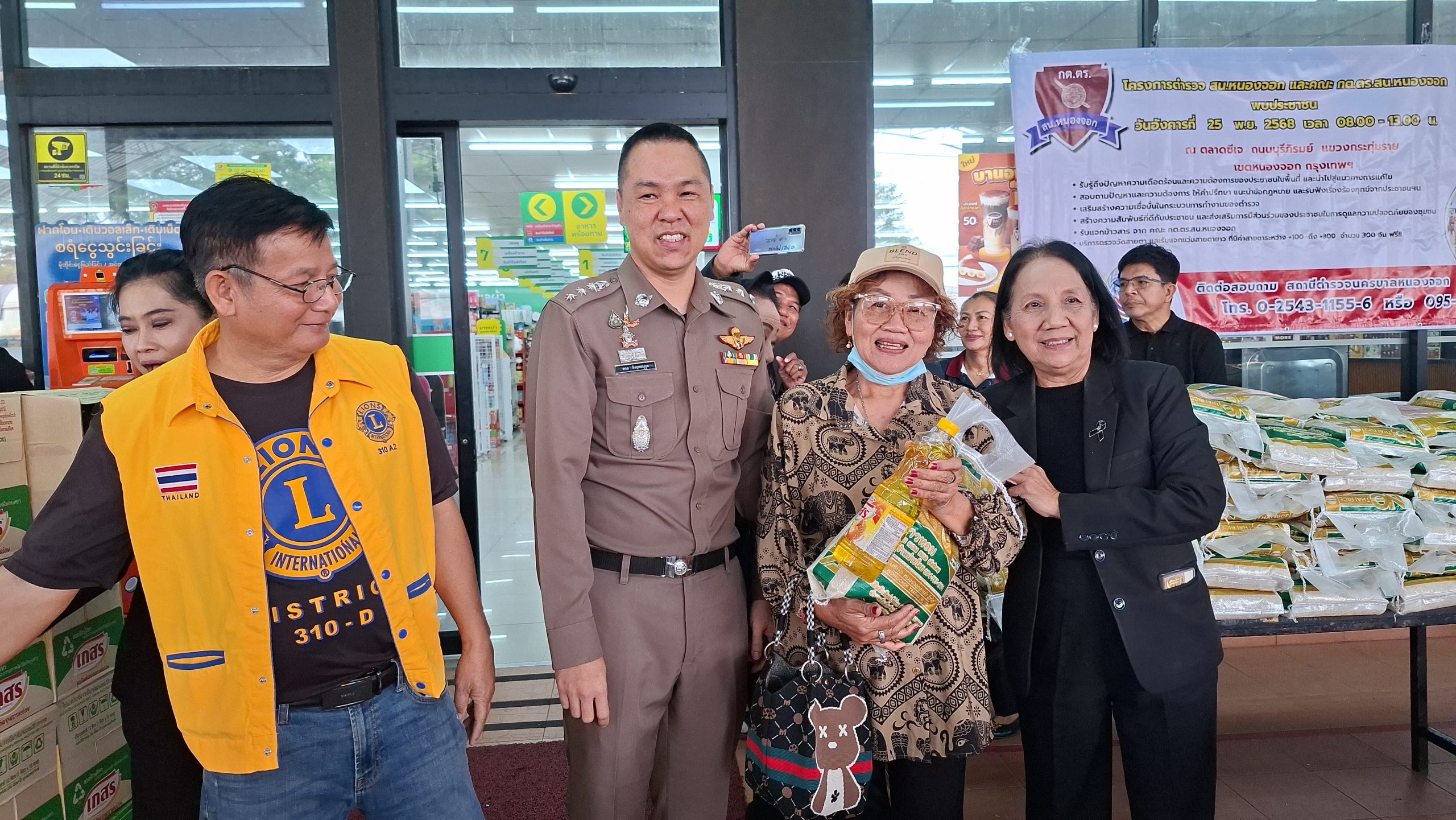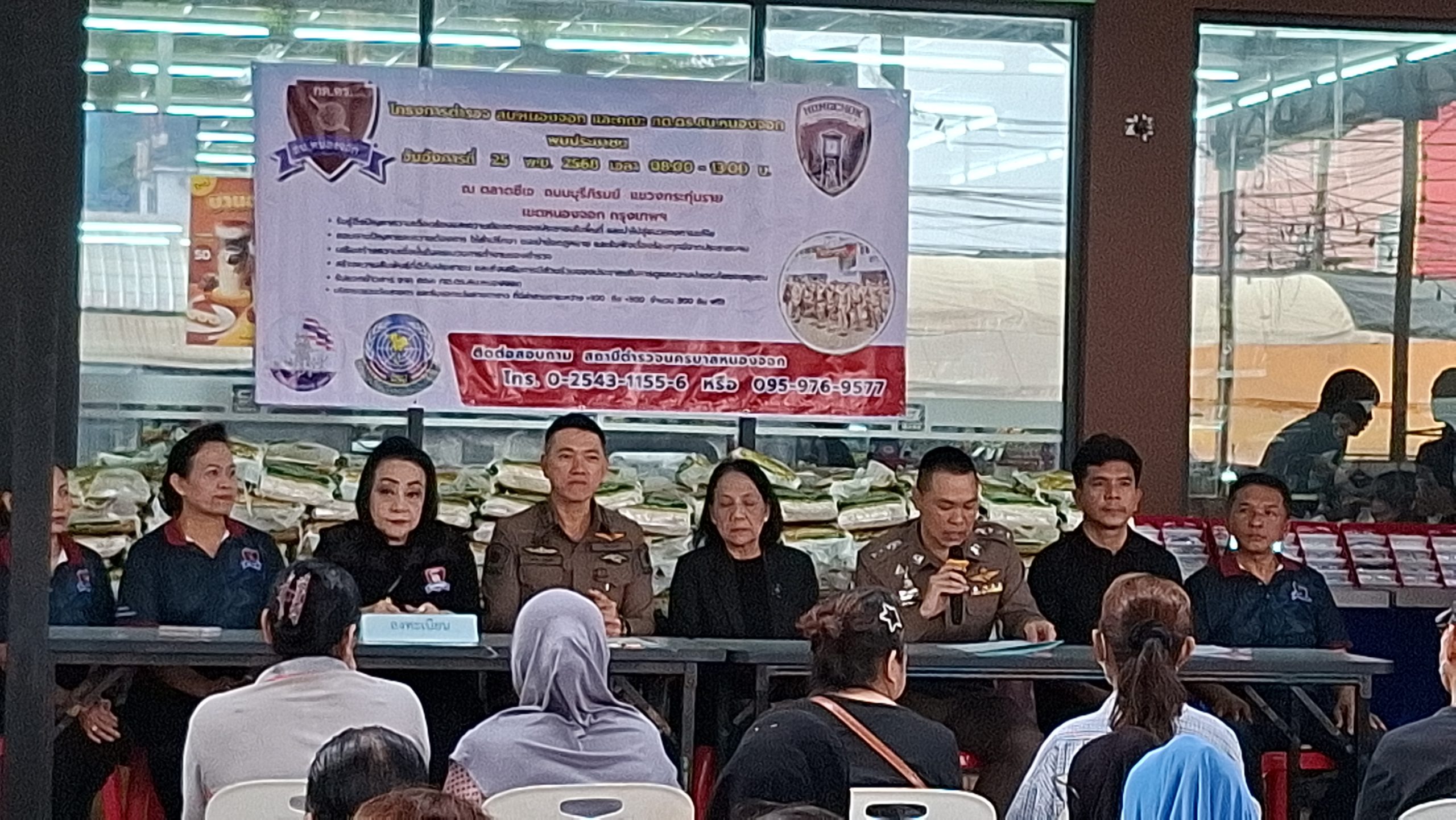 วันอังคารที่ 25 พ.ย. 2568 เวลา 08.00 – 13.00 น. ณ ตลาดซีเจ ถ.บุรีภิรมย์ พ.ต.อ.โฆษิต บุญทวี รอง ผบก.น.3 เป็นประธานเปิดโครงการตำรวจ และคณะ กต.ตร.สน.หนองจอก พบประชาชน พ.ต.อ.สกล อิงอุดมนุกูล ผกก.สน.หนองจอก ดร.สุวิมล หวังกิจ ประธาน กต.ตร.สน.หนองจอก และคณะ กต.ตร.สน.หนองจอก ข้าราชการตำรวจ สน.หนองจอก ประชาชนชาวหนองจอก ร่วมกิจกรรม โดยมีวัตถุประสงค์เพื่อ รับรู้ถึงปัญหาความเดือดร้อนและความต้องการของประชาชนในพื้นที่ และนำไปสู่แนวทางการแก้ไข สอบถามปัญหาและความต้องการ ให้คำปรึกษา แนะนำข้อกฎหมาย และรับฟังเรื่องร้องทุกข์จากประชาชนฯ เสริมสร้างความเชื่อมั่นในกระบวนการทำงานของตำรวจ สร้างความสัมพันธ์ที่ดีกับประชาชน และส่งเสริมการมีส่วนร่วมของประชาชนในการดูแลความปลอดภัยของชุมชน ในงาน คณะ กต.ตร.ได้มอบ ข้าวสารและน้ำมันพืช บริษัทยามาฮ่าวรภัณฑ์ ปราจีนบุรี บริการตรวจวัดสายตา และแจกแว่นตา ค่าสายตาระหว่าง +1.00 D ถึง +3.00 D จำนวน 300 อัน แก่ประชาชนที่มาร่วมงาน ฟร๊ มีผู้เข้าร่วมงานประมาณ 300 คน และมีการประชาสัมพันธ์โครงการประเมิน ITA ของ สน.หนองจอก ให้กับประชาชนที่มาร่วมงานทราบ