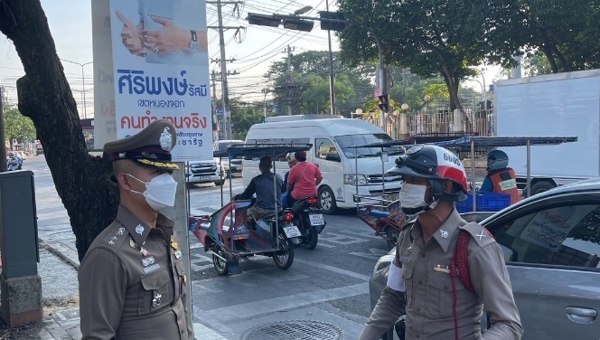 พ.ต.อ.สุนทรเกียรติ คล้ายกรุต รอง ผบก.น.3 (นครบาล 3-3) ตรวจเยี่ยมการปฏิบัติงานของเจ้าหน้าที่จราจร สน.