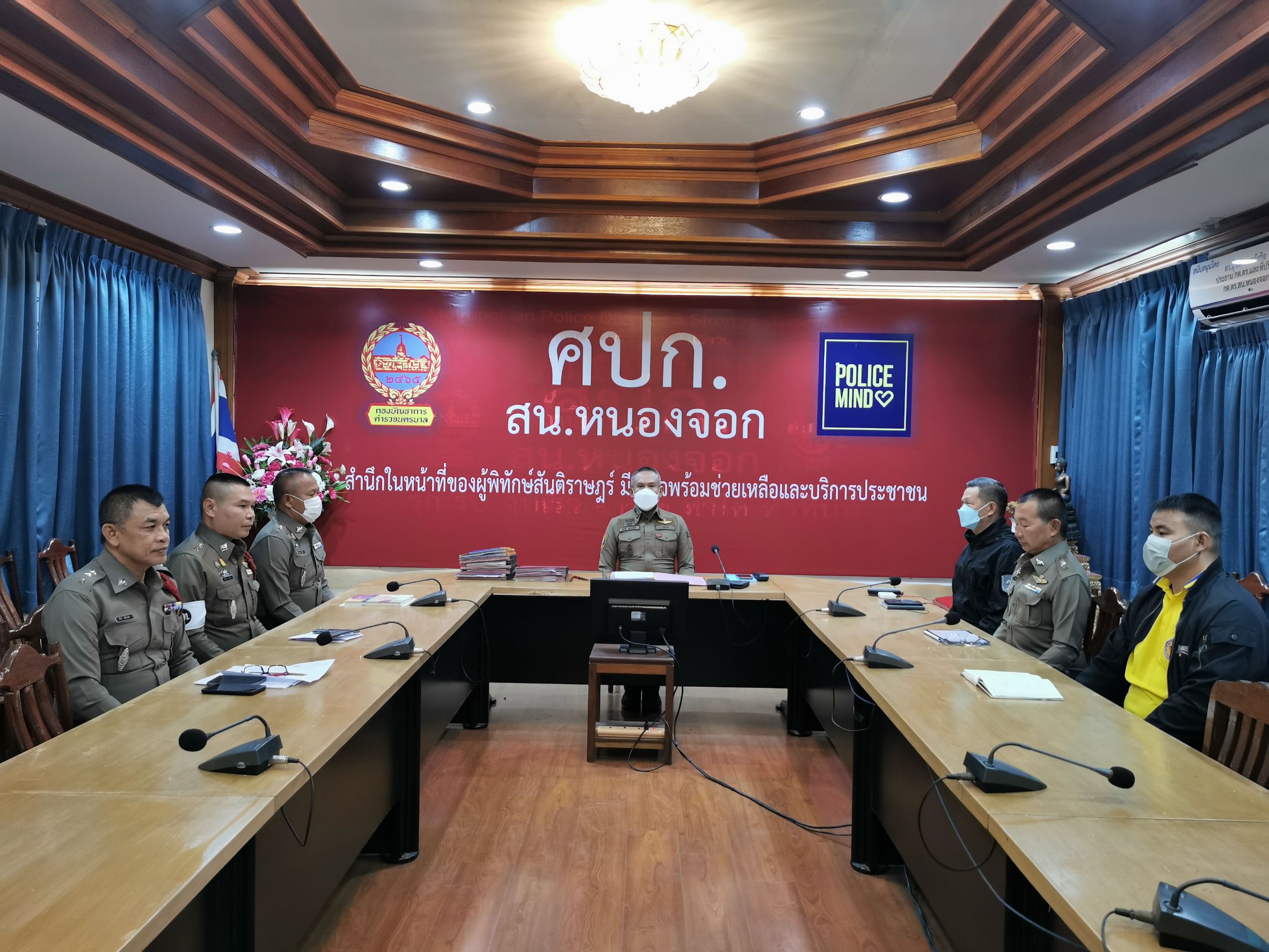 พ.ต.อ.ยิ่งยศ สุวรรณโณ ผกก.สน.หนองจอก ประธานเฝ้าฟังการประชุม พร้อมด้วย พ.ต.ท.อธิวัฒน์ อธิชัย