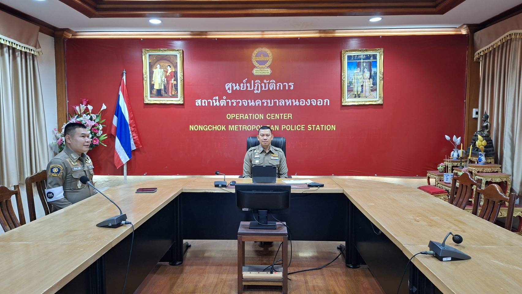 พ.ต.อ.สกล อิงอุมนุกูล ผกก.สน.หนองจอก พร้อมด้วยคุณอุดม เฟื่องฟูลอย กรรมการ กต.ตร. สน.หนองจอก คุณอรุณศ
