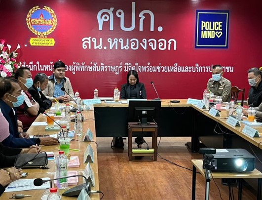 วันที่ ๒๖ ธ.ค. ๒๕๖๕ เวลา ๑๔.๐๐ น. พ.ต.อ.ประเสริฐ สอนแจ่ม ผกก.สน.หนองจอก มอบหมายให้ พ.ต.ท.กิตติ บุญแสน รอง ผกก.ป.สน.หนองจอก และเจ้าหน้าที่ตำรวจชุมชนสัมพันธ์ สน.หนองจอก พร้อมด้วย ดร.สุวิมล หวังกิจ ประธาน กต.ตร.สน.หนองจอก และอาจารย์อาดัม มะดะเรส รองประธานที่ปรึกษาฯ ออกพบปะเยี่ยมเยียนประชาชนในชุมชนแผ่นดินทองอัลฮุดา ซอยเลียบวารี ๗ ถนนเลียบวารี แขวงกระทุ่มราย เขตหนองจอก กรุงเทพฯ เพื่อรับฟังปัญหาต่างๆ ในชุมชน และนำไปสู่การแก้ไขปัญหาความเดือดร้อนของประชาชนต่อไป