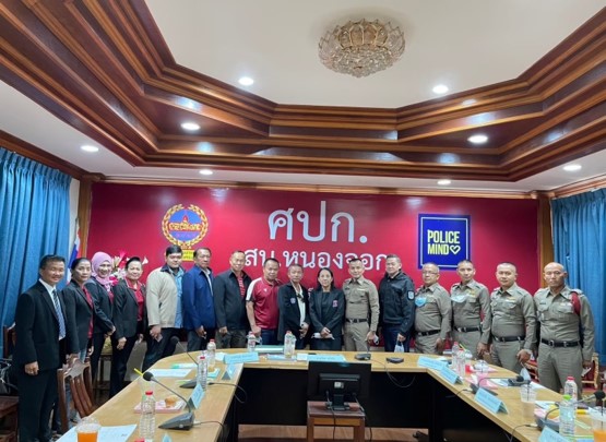 วันที่ ๒๕ ม.ค. ๒๕๖๖ เวลา ๑๓.๐๐ น. พ.ต.อ.ประเสริฐ สอนแจ่ม ผกก.สน.หนองจอก และ พ.ต.ท.กิตติ บุญแสนรอง ผกก.ป.สน.หนองจอก, เจ้าหน้าที่ตำรวจชุมชนสัมพันธ์ สน.หนองจอก พร้อมด้วย ดร.สุวิมล หวังกิจ ประธานกต.ตร.สน.หนองจอก และอาจารย์อาดัม มะดะเรส รองประธานที่ปรึกษาฯ ออกพบปะเยี่ยมเยียนประชาชนในชุมชนบึงฝรั่งพัฒนา ถนนผดุงพันธ์ แขวงหนองจอก เขตหนองจอก กรุงเทพฯ เพื่อรับฟังปัญหาต่างๆ ในชุมชน และนำไปสู่การแก้ไขปัญหาและความเดือดร้อนของประชาชนตามโครงการดำเนินงานชุมชนยั่งยืนฯ และ RTP Cyber Villageชุมชนบึงฝรั่งพัฒนา ถนนผดุงพันธ์ แขวงหนองจอก เขตหนองจอก กรุงเทพฯ