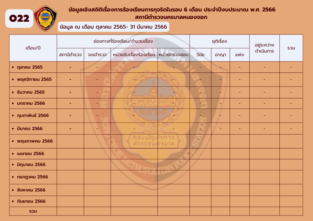 ข้อมูลสถิติการแจ้งเรื่องร้องเรียนการทุจริตและประพฤติมิชอบของเจ้าหน้าที่ตำรวจ